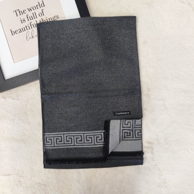 Elegant Women's Winter Scarf – Grey with Pink Flowers and Geometric Border