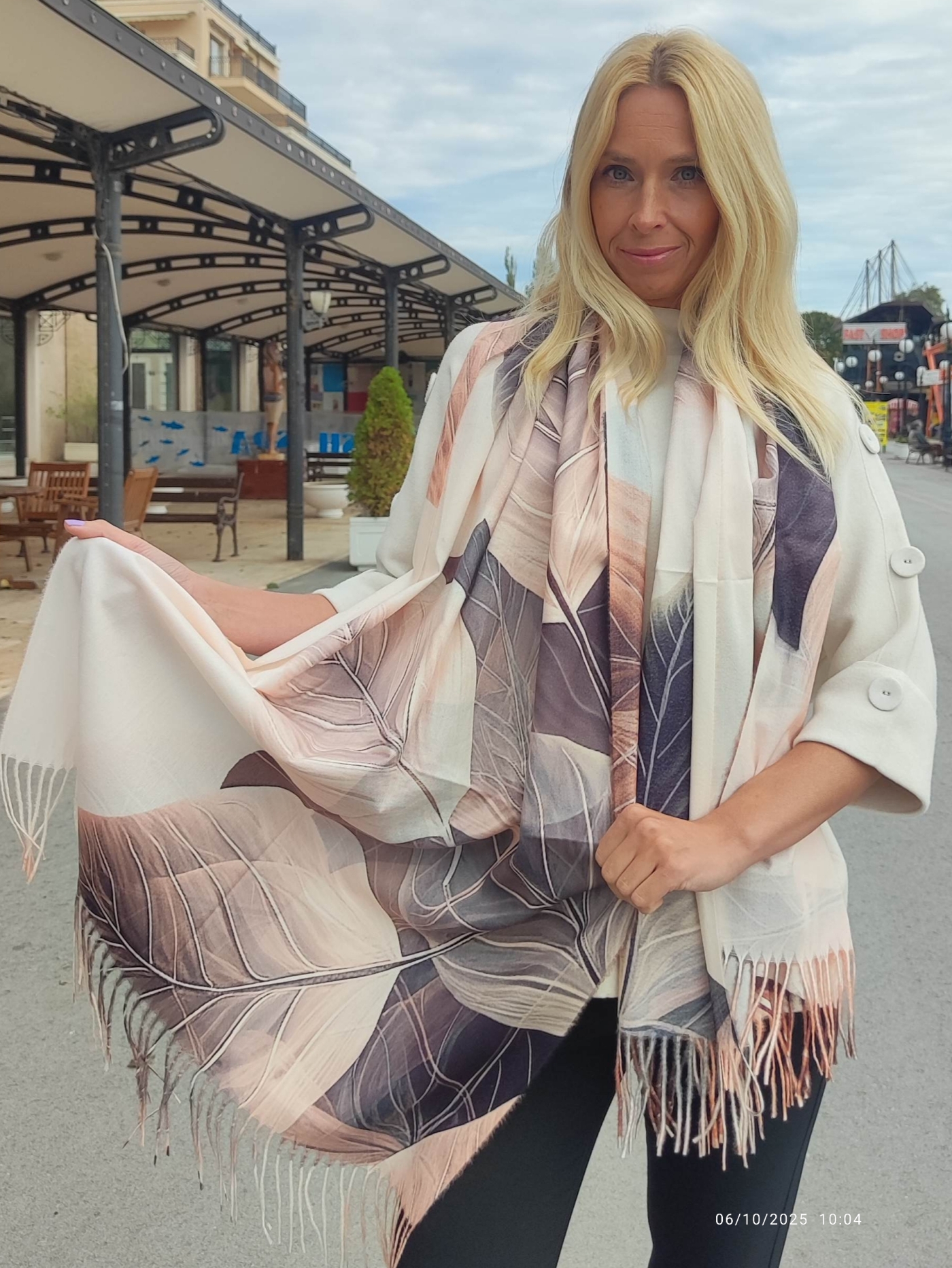 Add warmth and sophistication to your look with the “Golden Leaf” women's cashmere scarf.