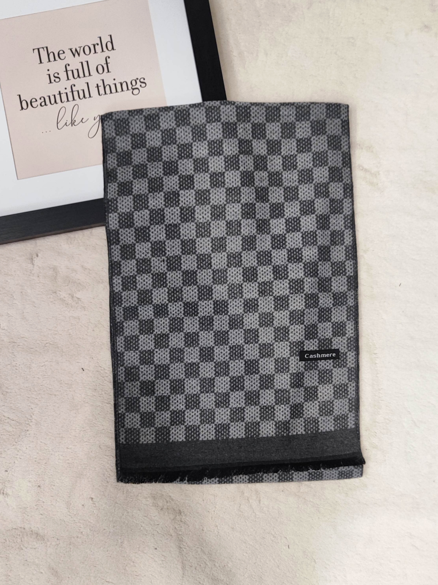 👑 Product Description: Introducing our luxurious cashmere scarf with an elegant checkered pattern that combines warmth, comfort and impeccable style. This versatile scarf is designed for men who value quality and want to add a sophisticated finish to their winter look.