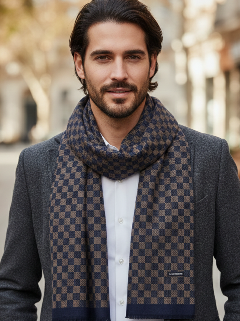 👑 Product Description: Introducing our luxurious cashmere scarf with an elegant checkered pattern that combines warmth, comfort and impeccable style. This versatile scarf is designed for men who value quality and want to add a sophisticated finish to their winter look.