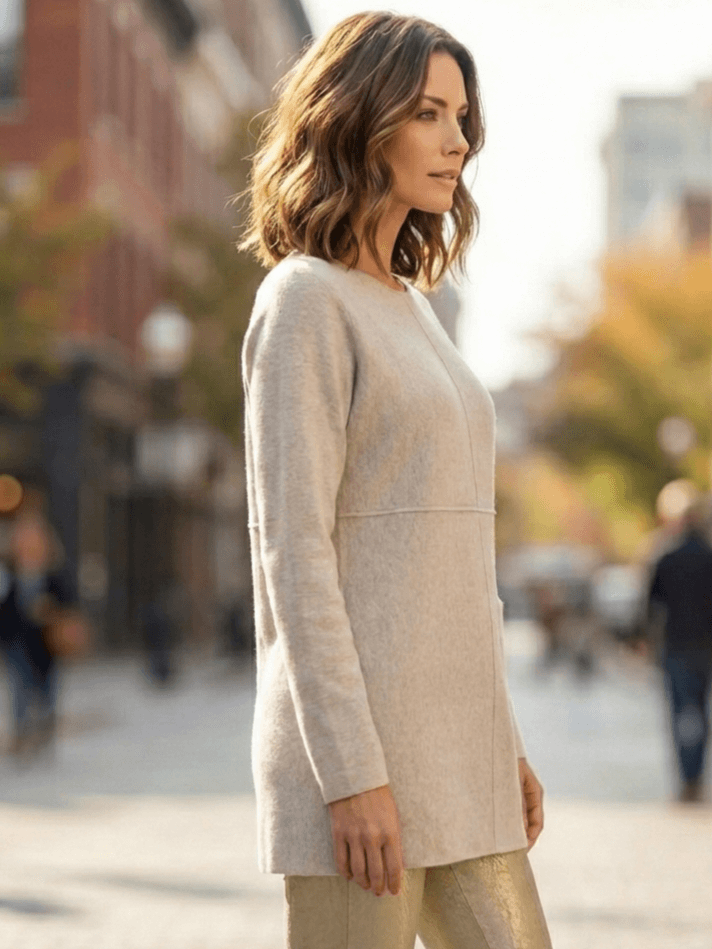 Stylish Italian tunic with pocket – Soft knit in Beige color