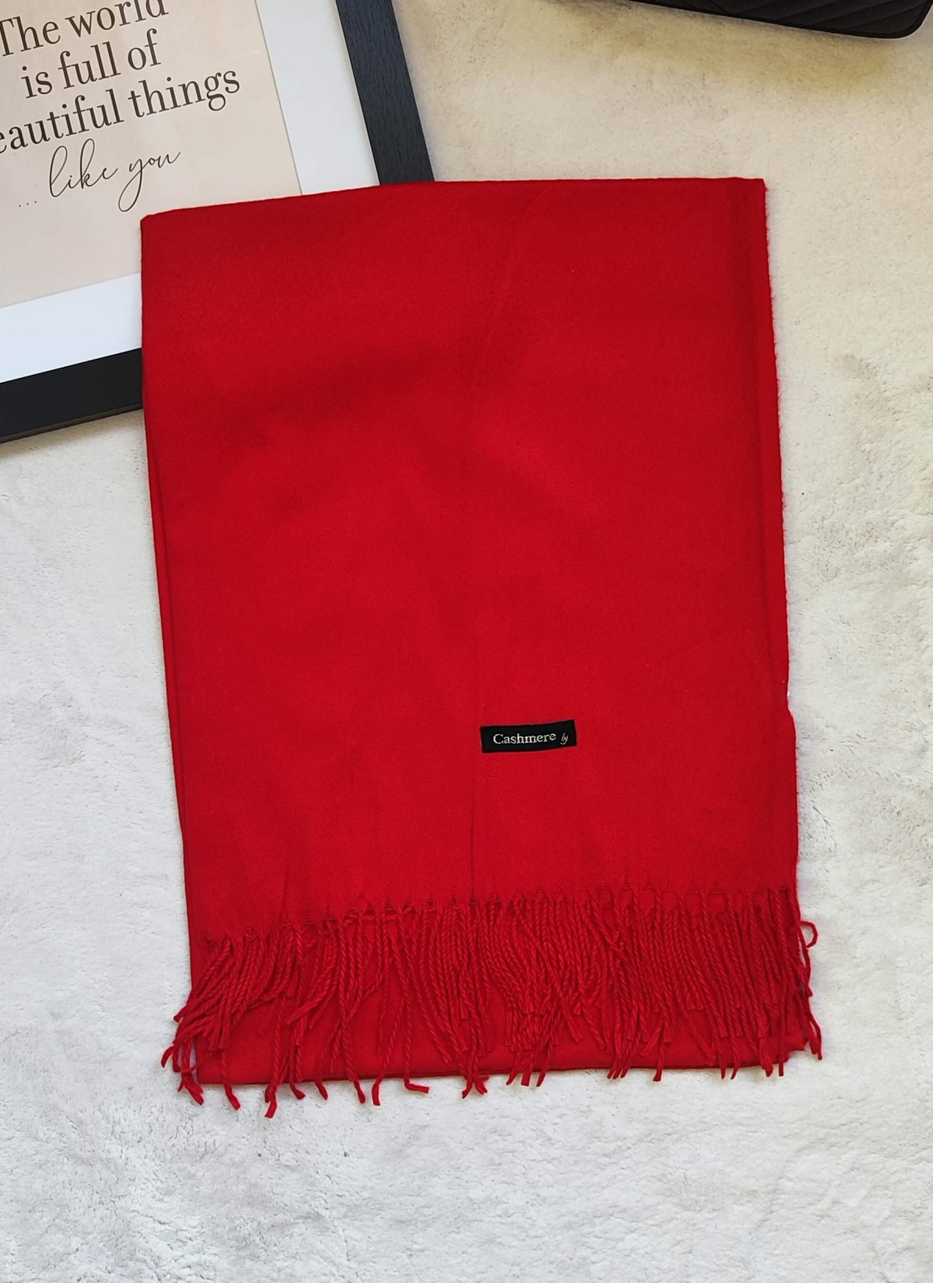 Luxurious, red cashmere scarf. Provides unparalleled warmth and softness.