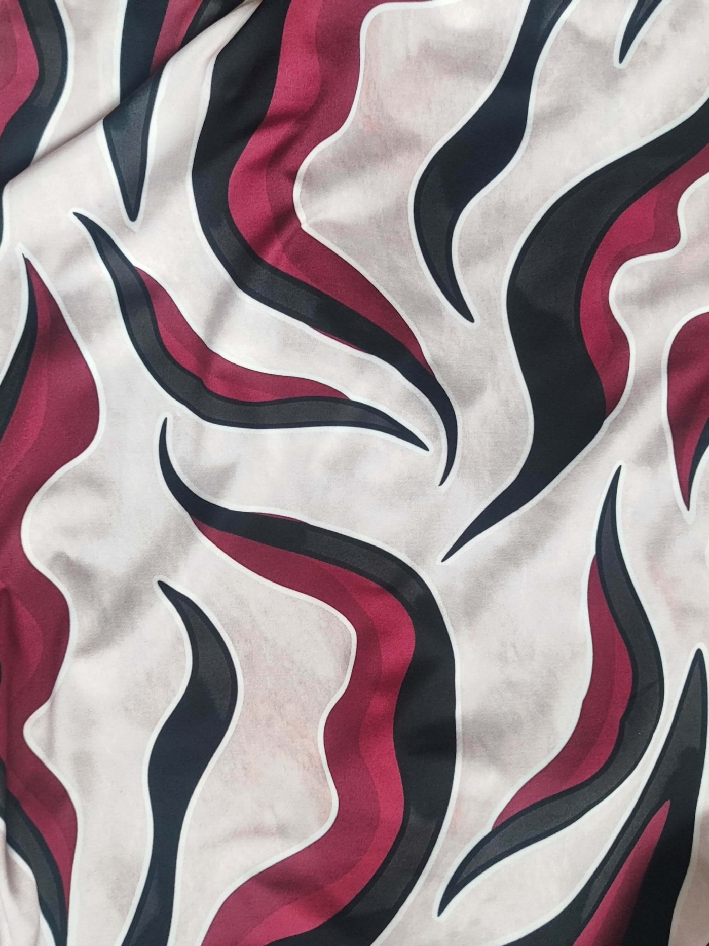 Elegant viscose tunic with abstract print in burgundy and black (Sizes 46-54)