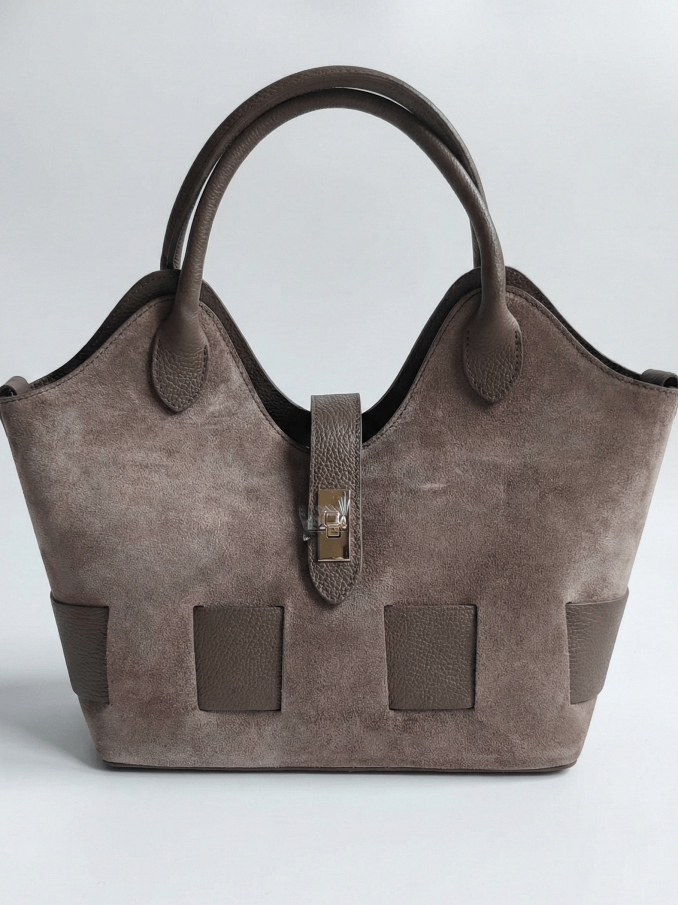 Women's Italian bag made of genuine leather and suede - Color Taupe (Gray-brown)