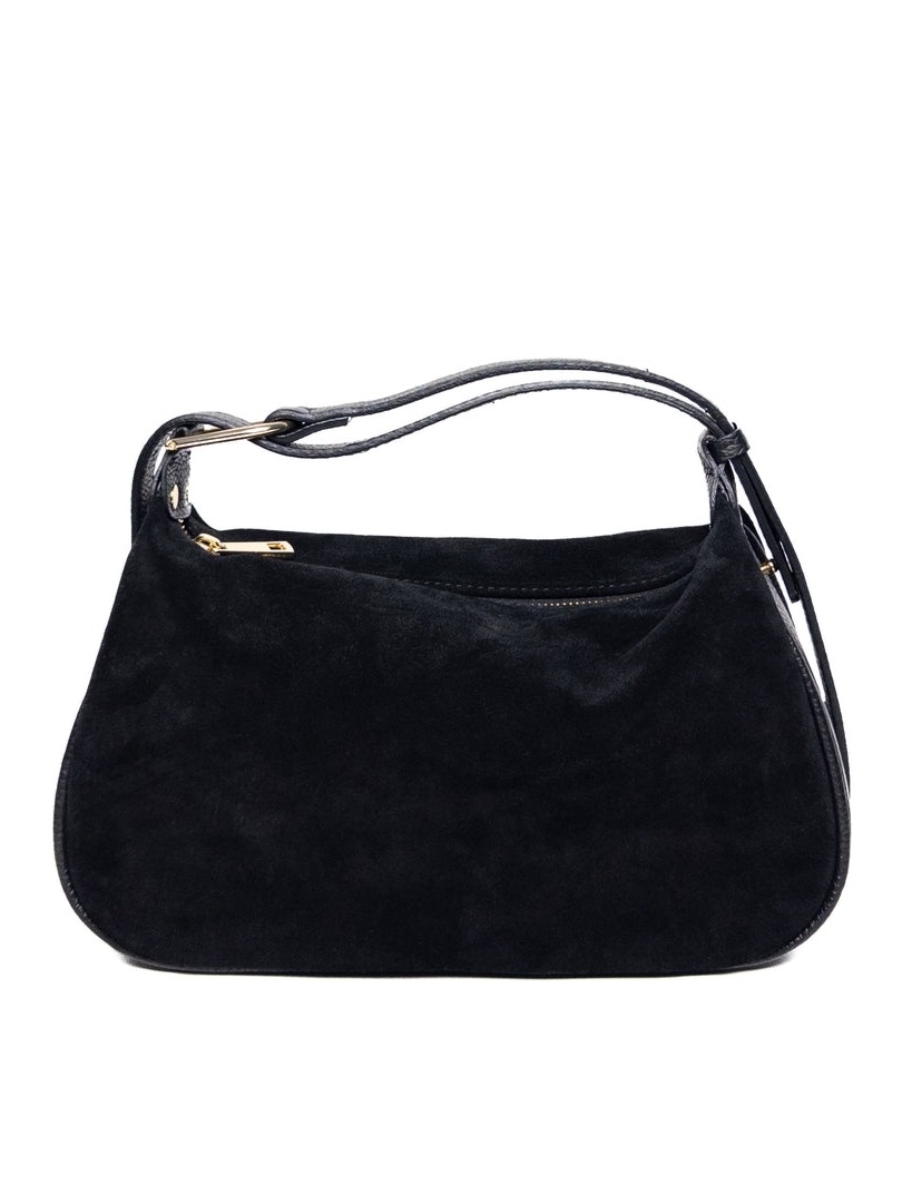 Discover an elegant Italian handbag made of natural suede in black.