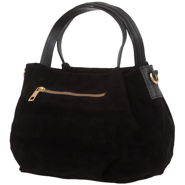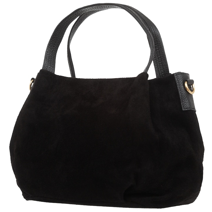 Bring a touch of Tuscan luxury to your wardrobe with this sophisticated model, made in Florence, Italy. The bag is made of soft and dense natural suede (Camoscio), in black color. Golden metal elements add subtle shine and finish to the design.