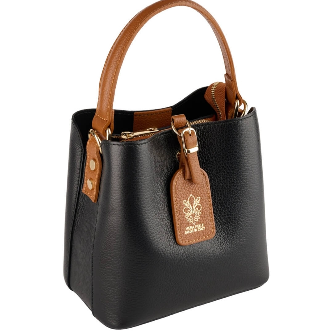 Italian Women's Bag Genuine Leather Vera Pelle in Black and Brown