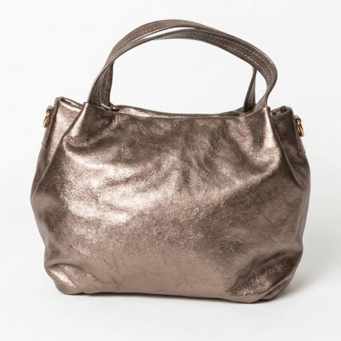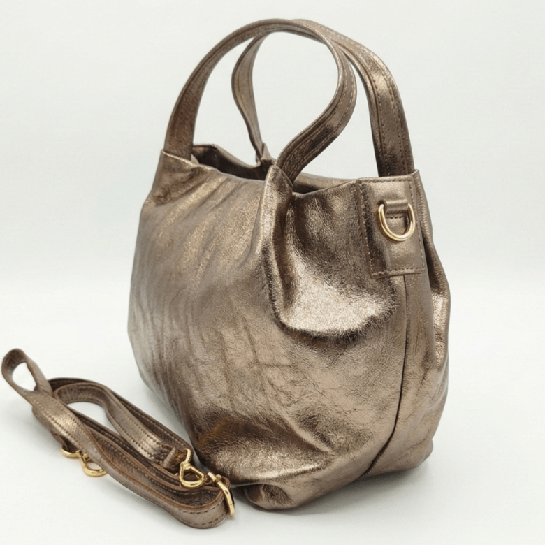 Shine with an elegant antique gold handbag made of high-quality Italian genuine leather.