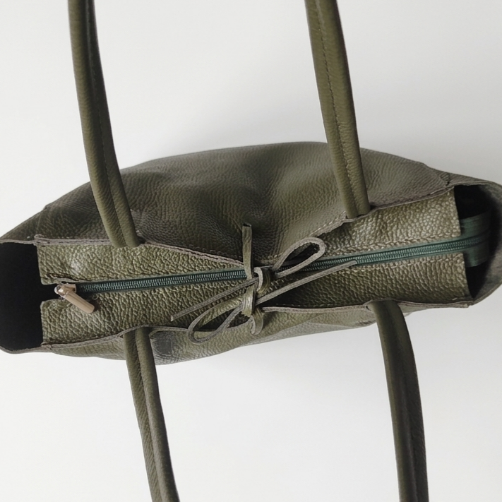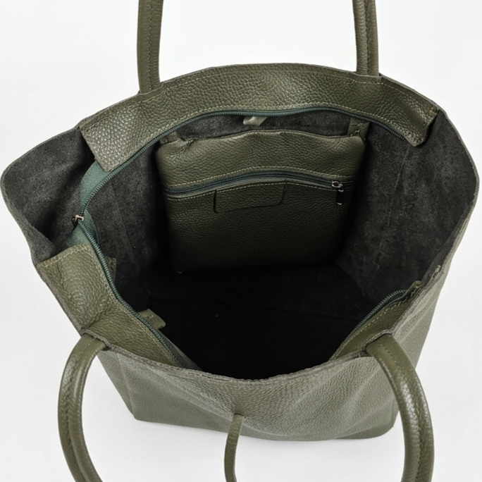 Elegant green Tote bag made of 100% Italian genuine leather Vera Pelle.