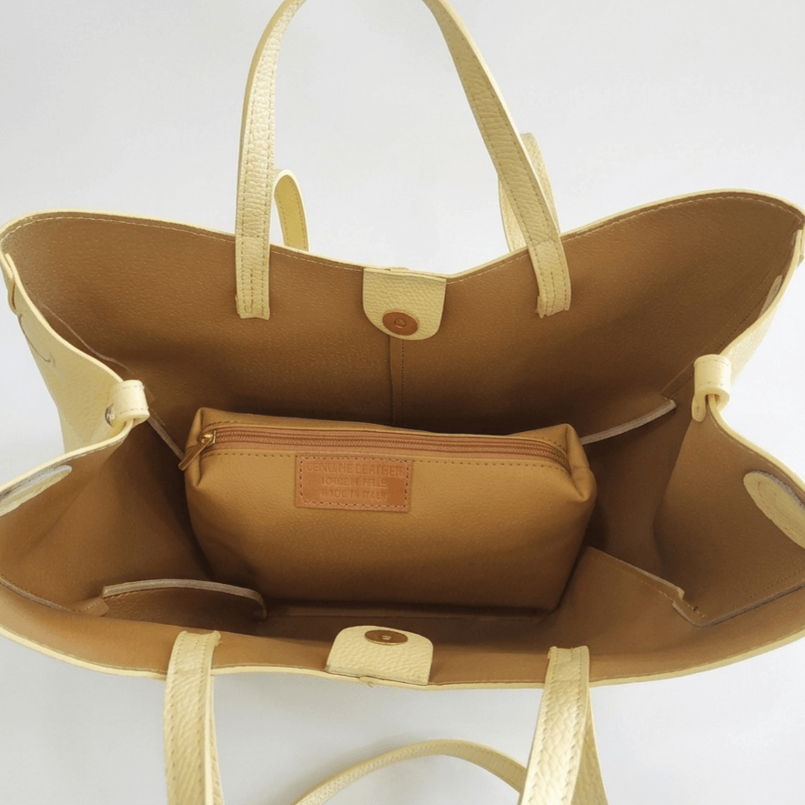 Elegant yellow handbag made of authentic Italian genuine leather.