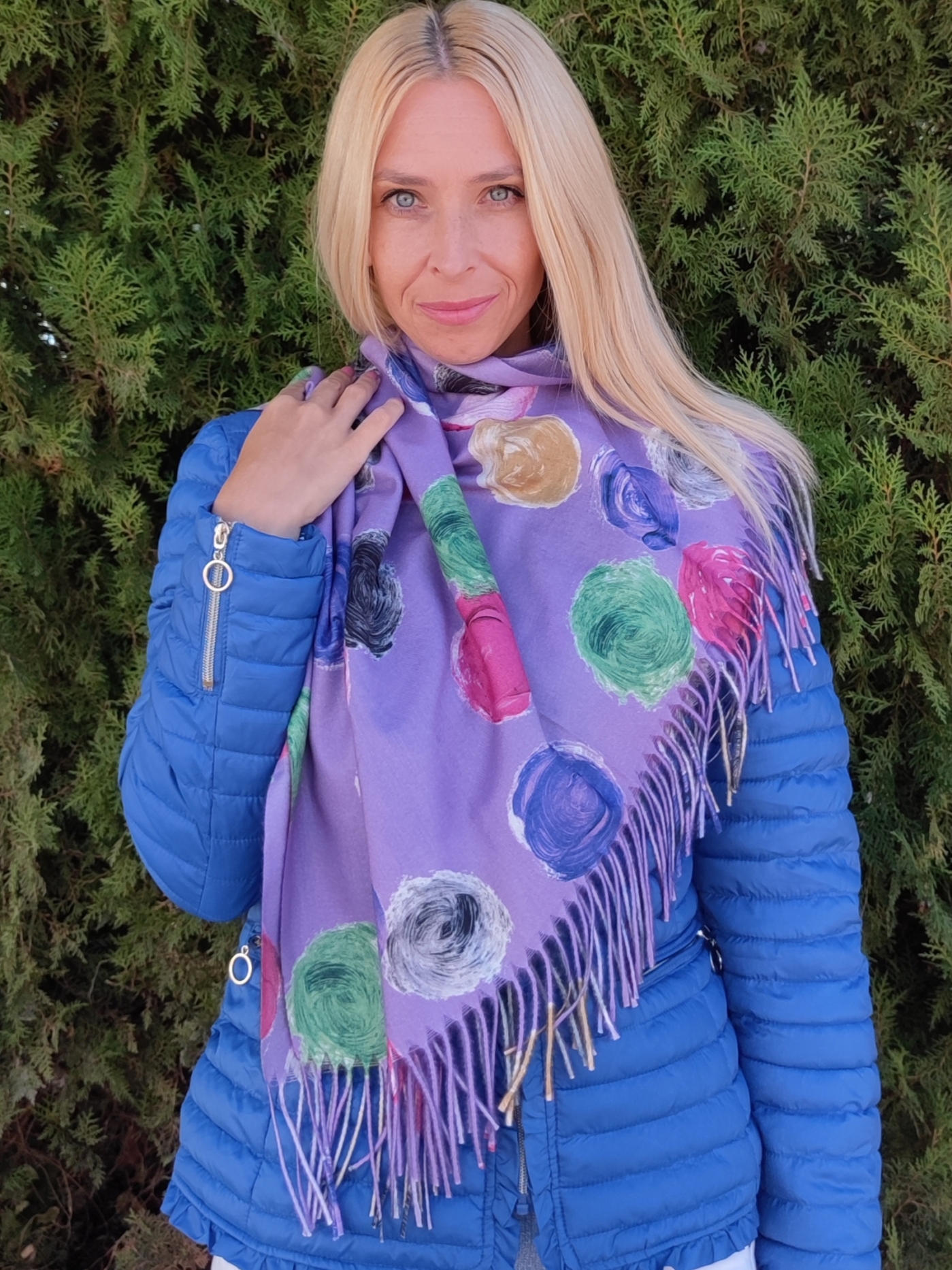 Дамски кашмирен шал на топки в лилаво