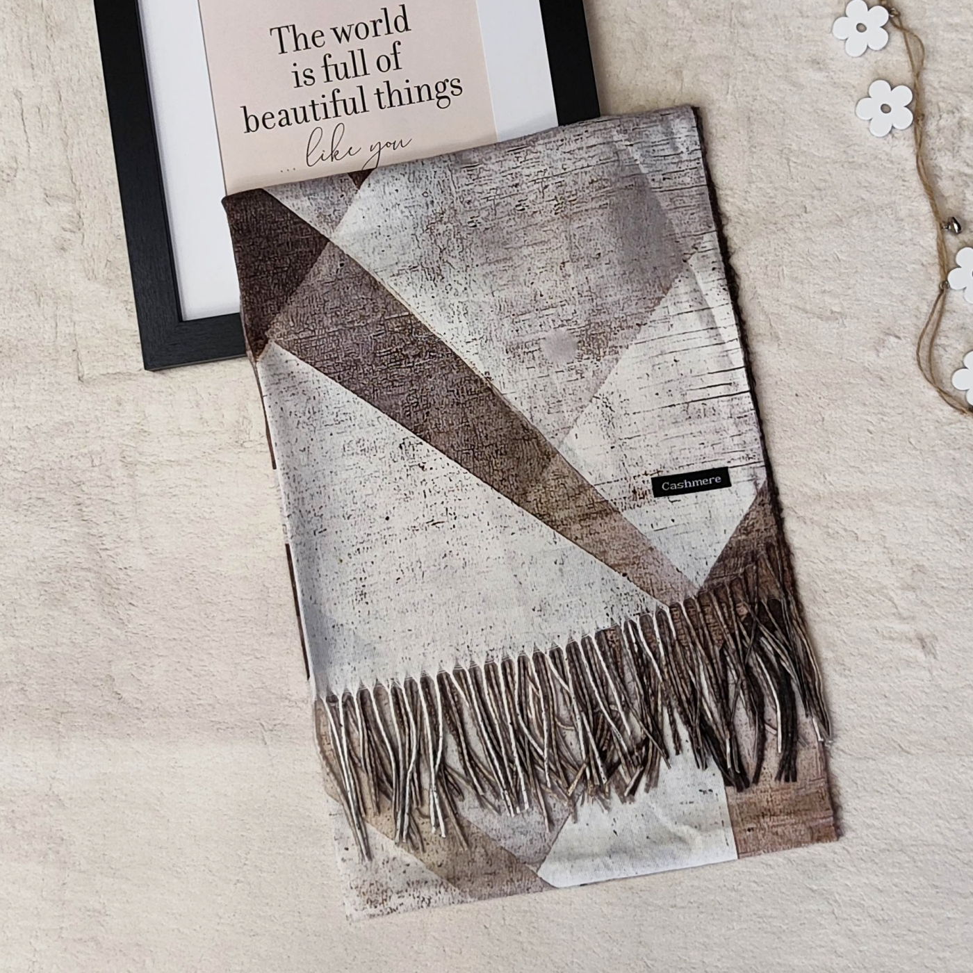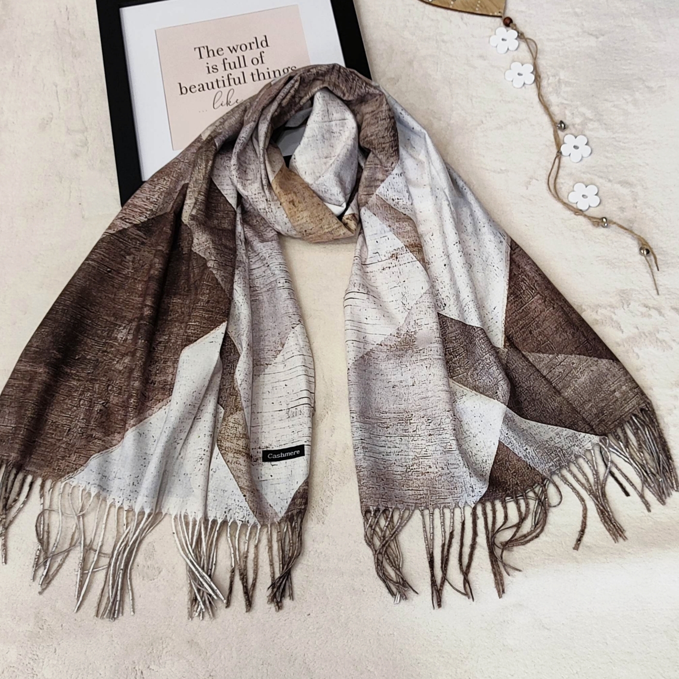 Кашмирени шал с геометричен принт с кафяво и сиво
