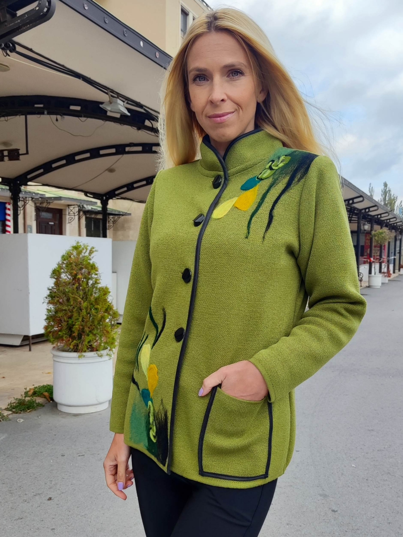 Добави стил и комфорт към визията си с тази елегантна дамска жилетка в зелено с фина бродерия. Класическият ѝ дизайн я прави подходяща както за ежедневието, така и за по-официални поводи. Изработена от мека и приятна на допир материя, тя осигурява топлина и удобство през целия ден.