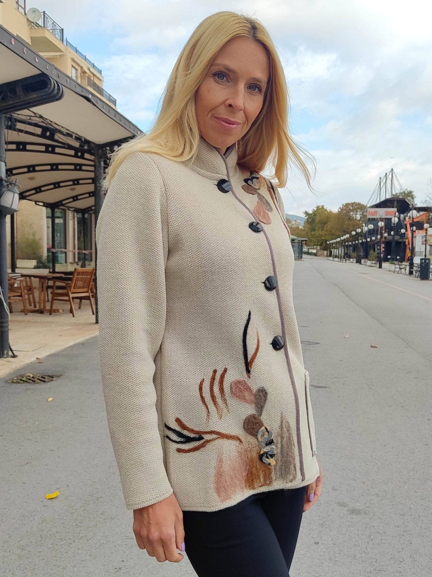 Дамска жилетка в бежово с артистичен флорален дизайн