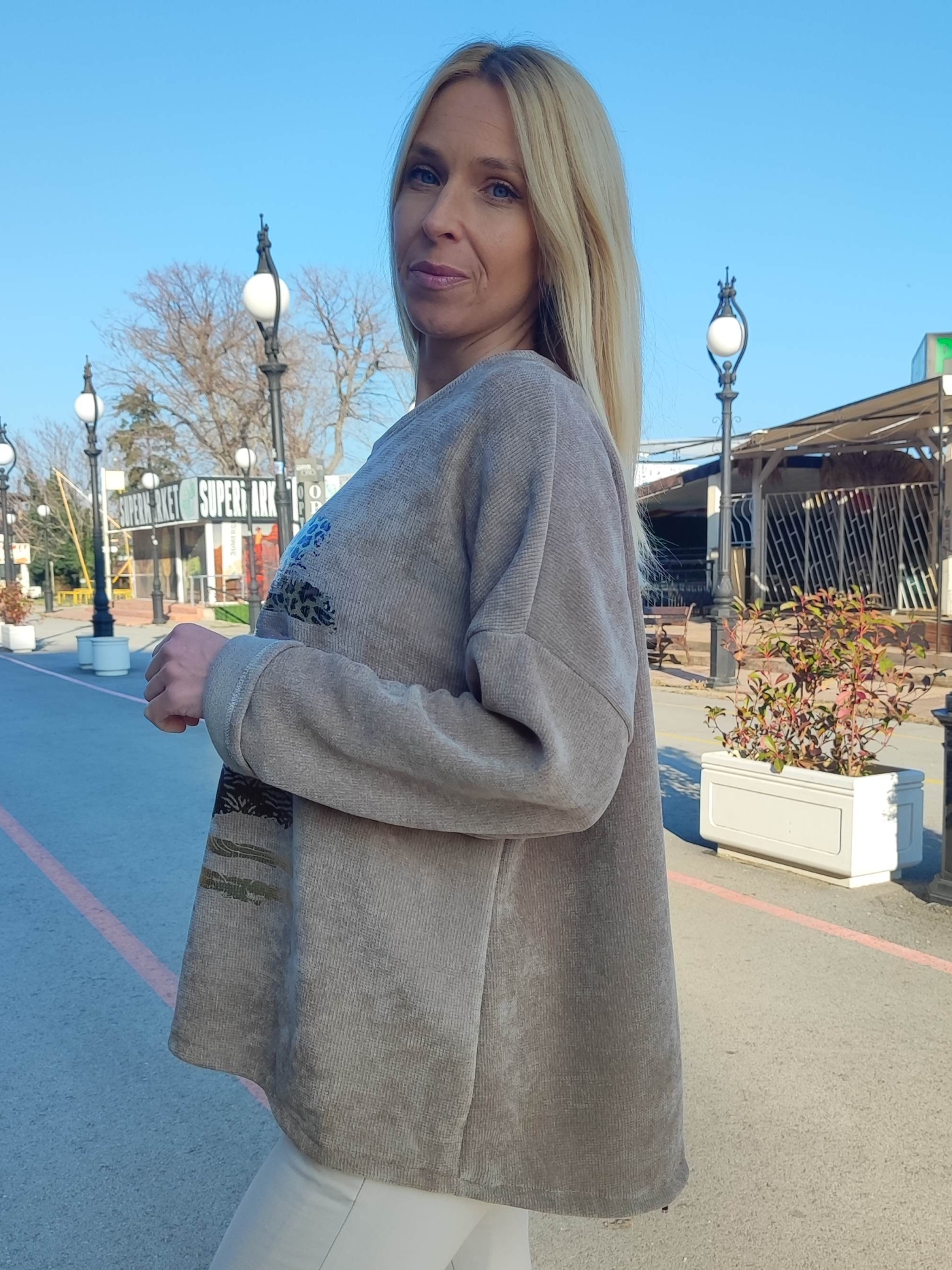 Добавете елегантност и комфорт към ежедневната си визия с тази стилна дамска блуза в бежово.