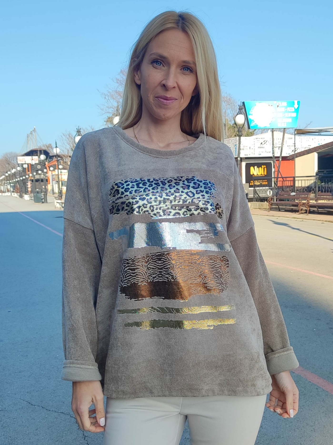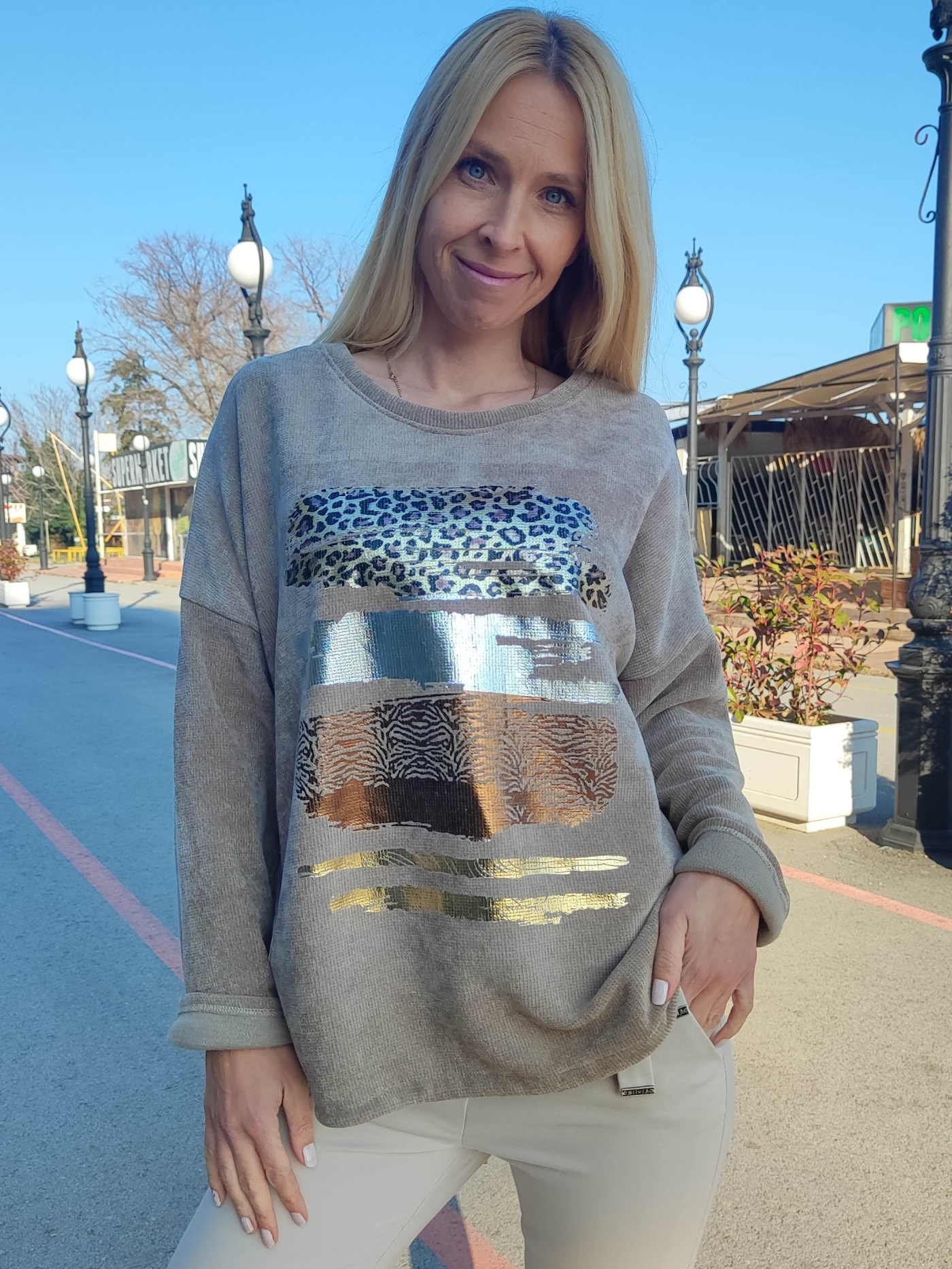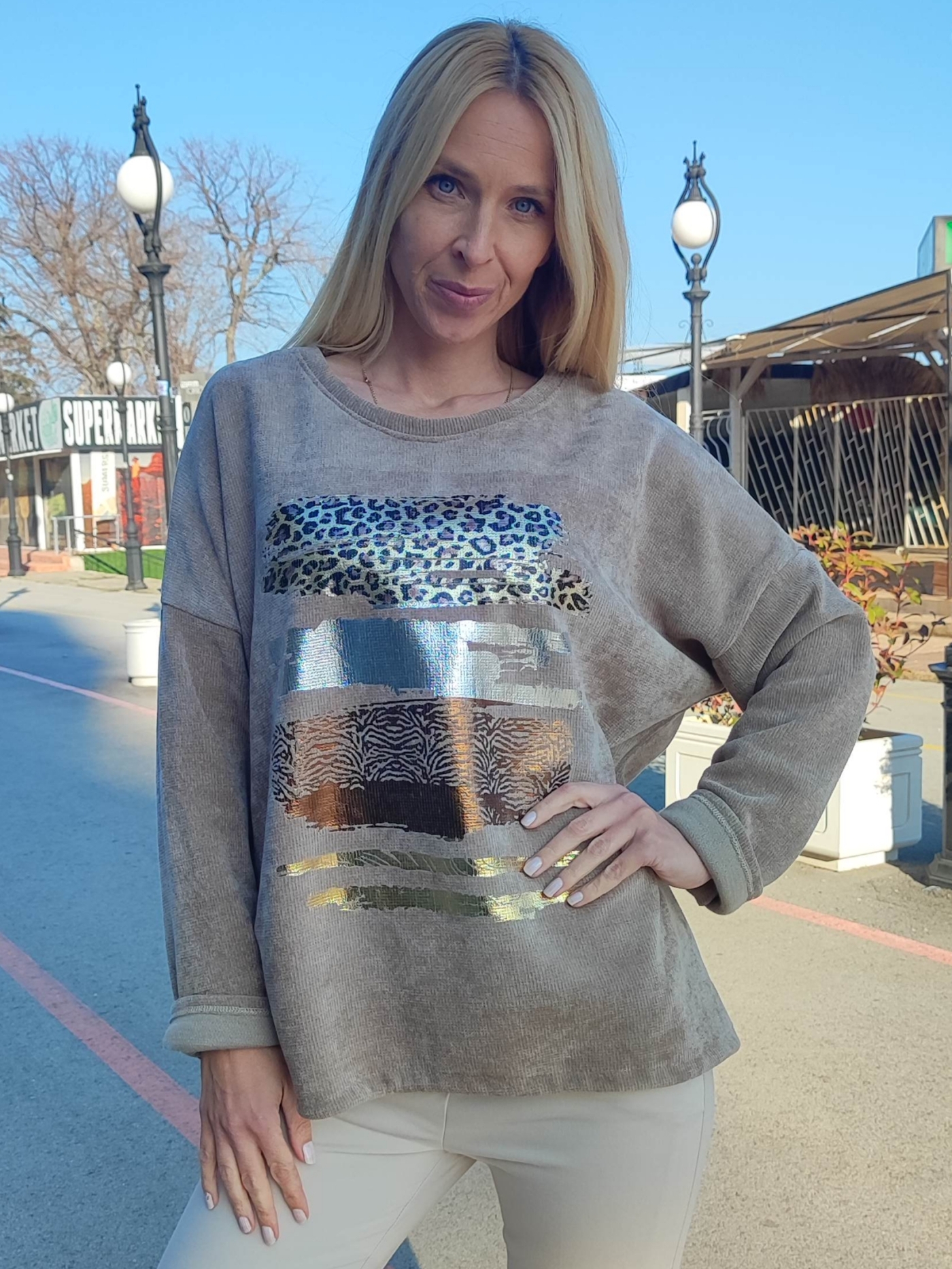 Добавете стил и комфорт към гардероба си с тази модерна дамска блуза в бежово, изработена в Италия.