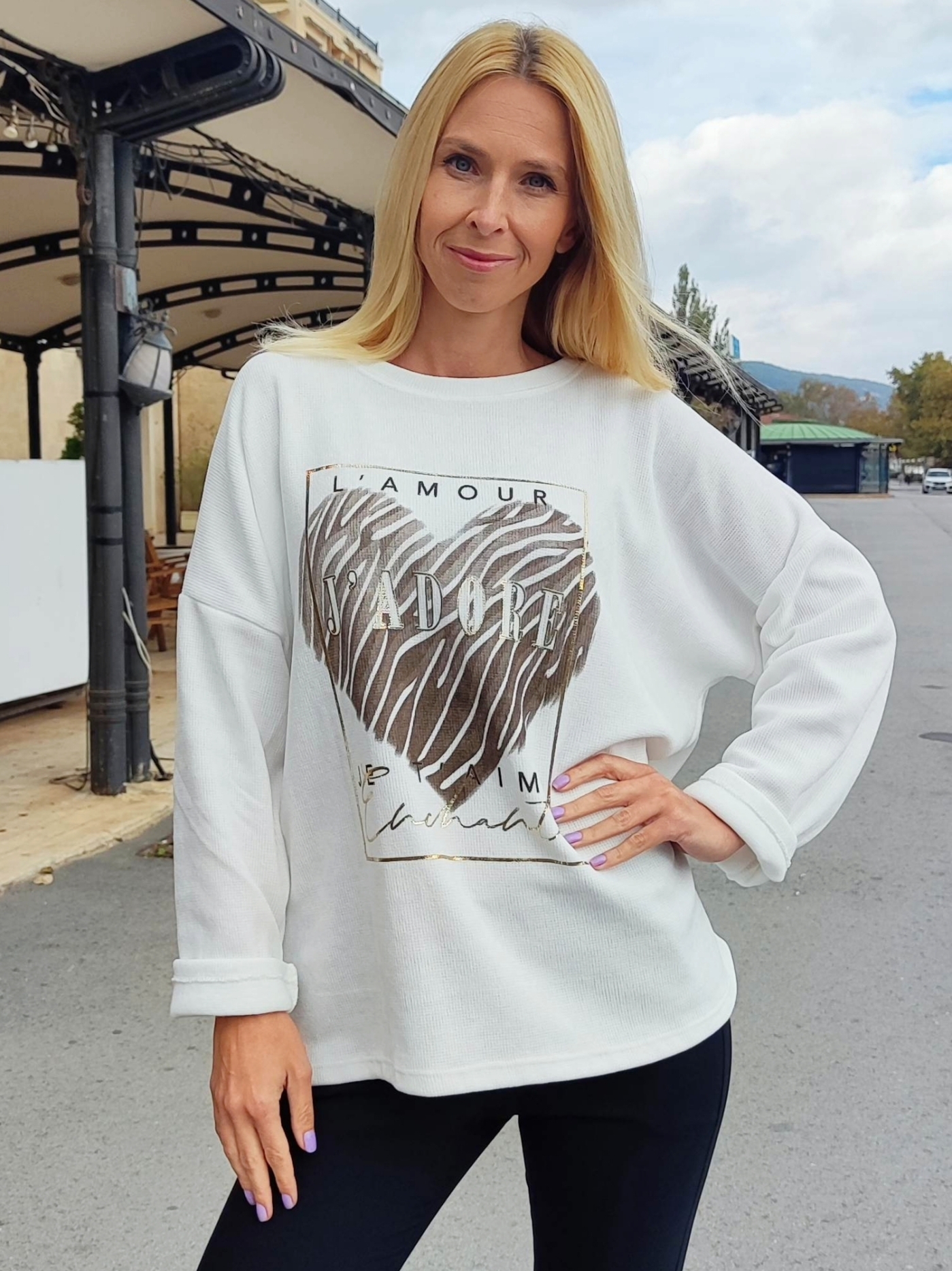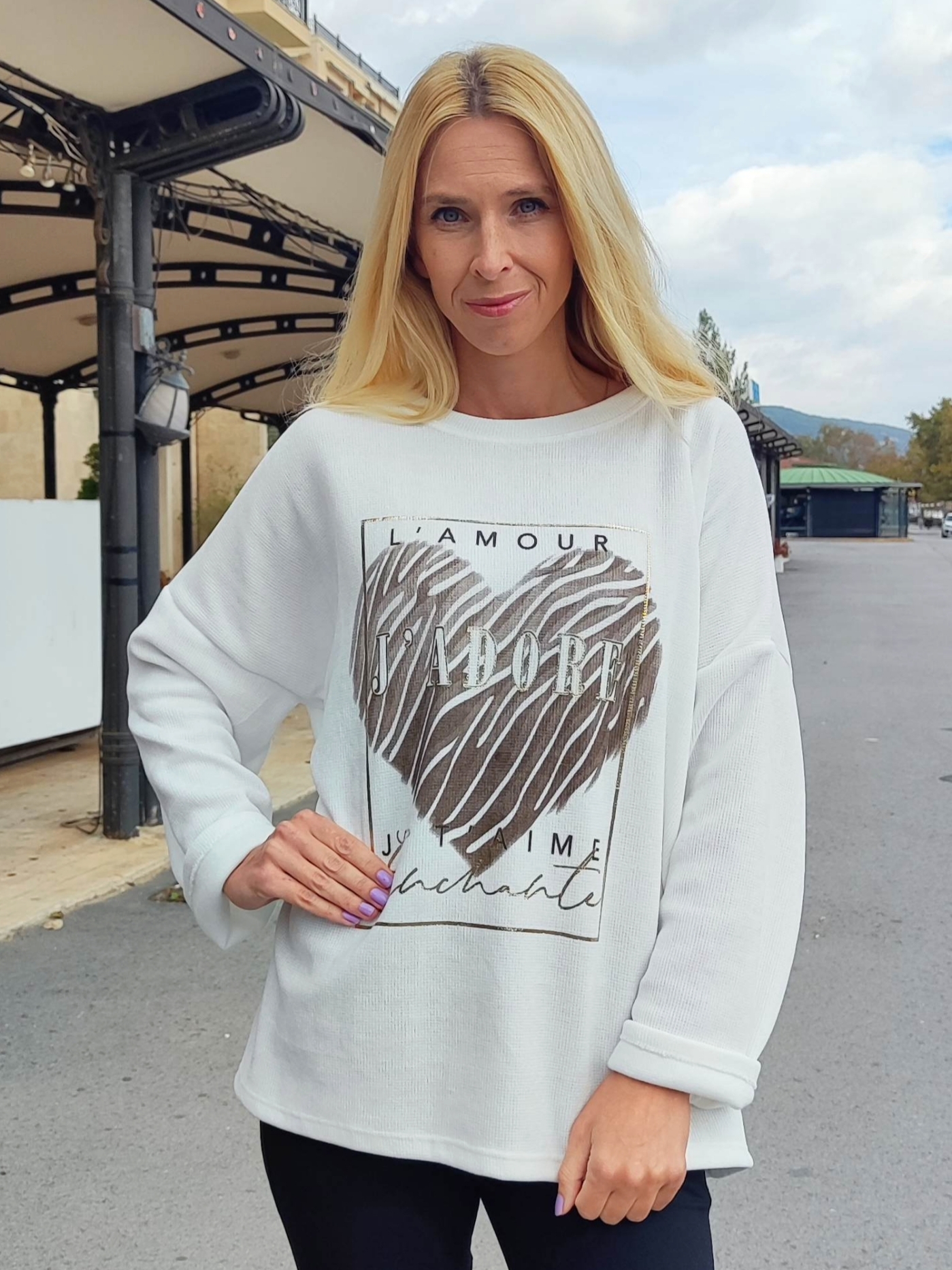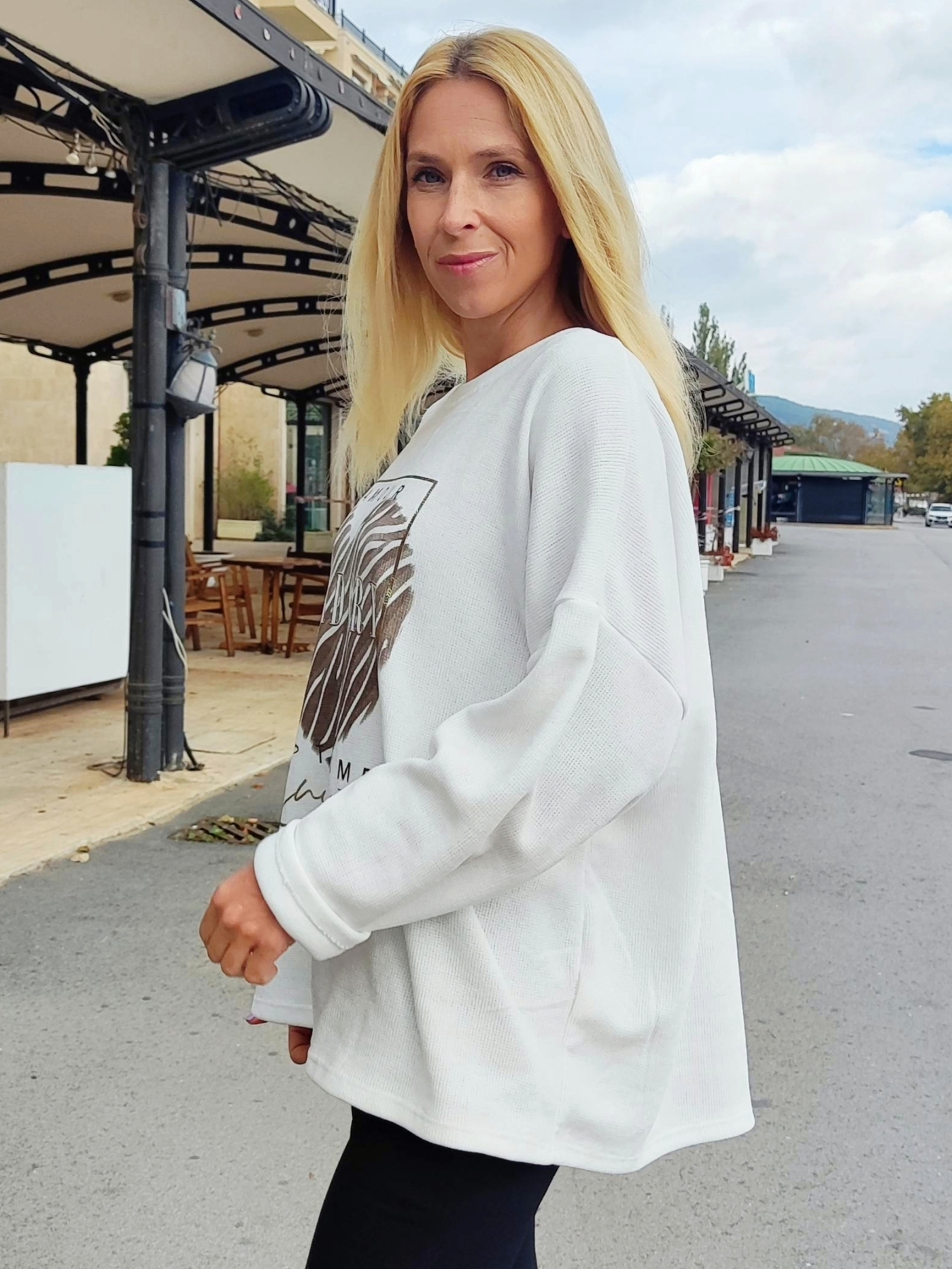 Добавете стил и комфорт към гардероба си с тази модерна дамска блуза в бяло, изработена в Италия.