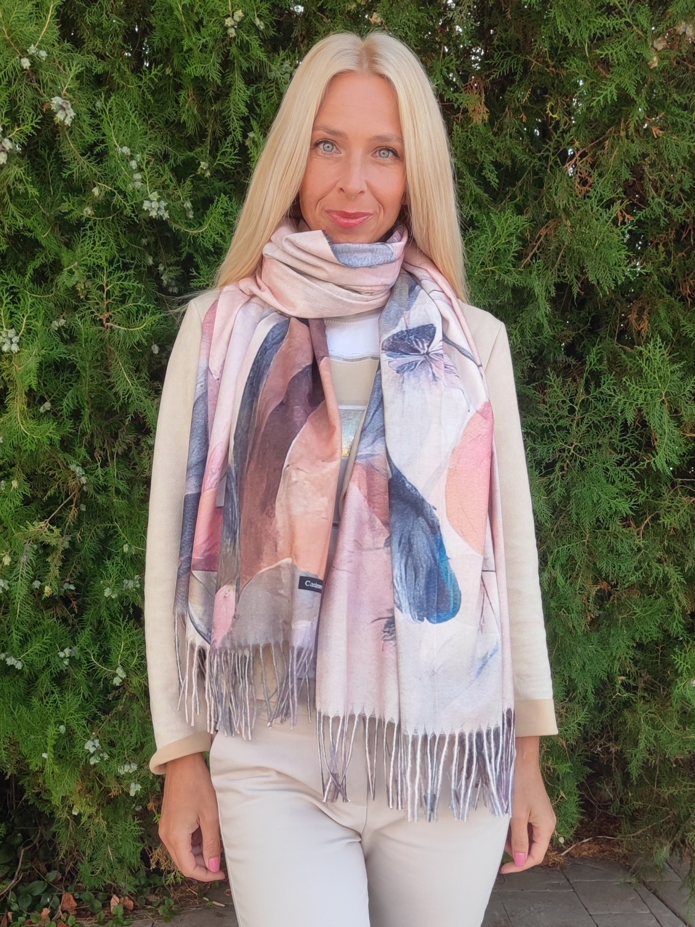 Добавете изискан стил към всяка визия с този елегантен дамски шал, изработен от мека и топла кашмирена смес.