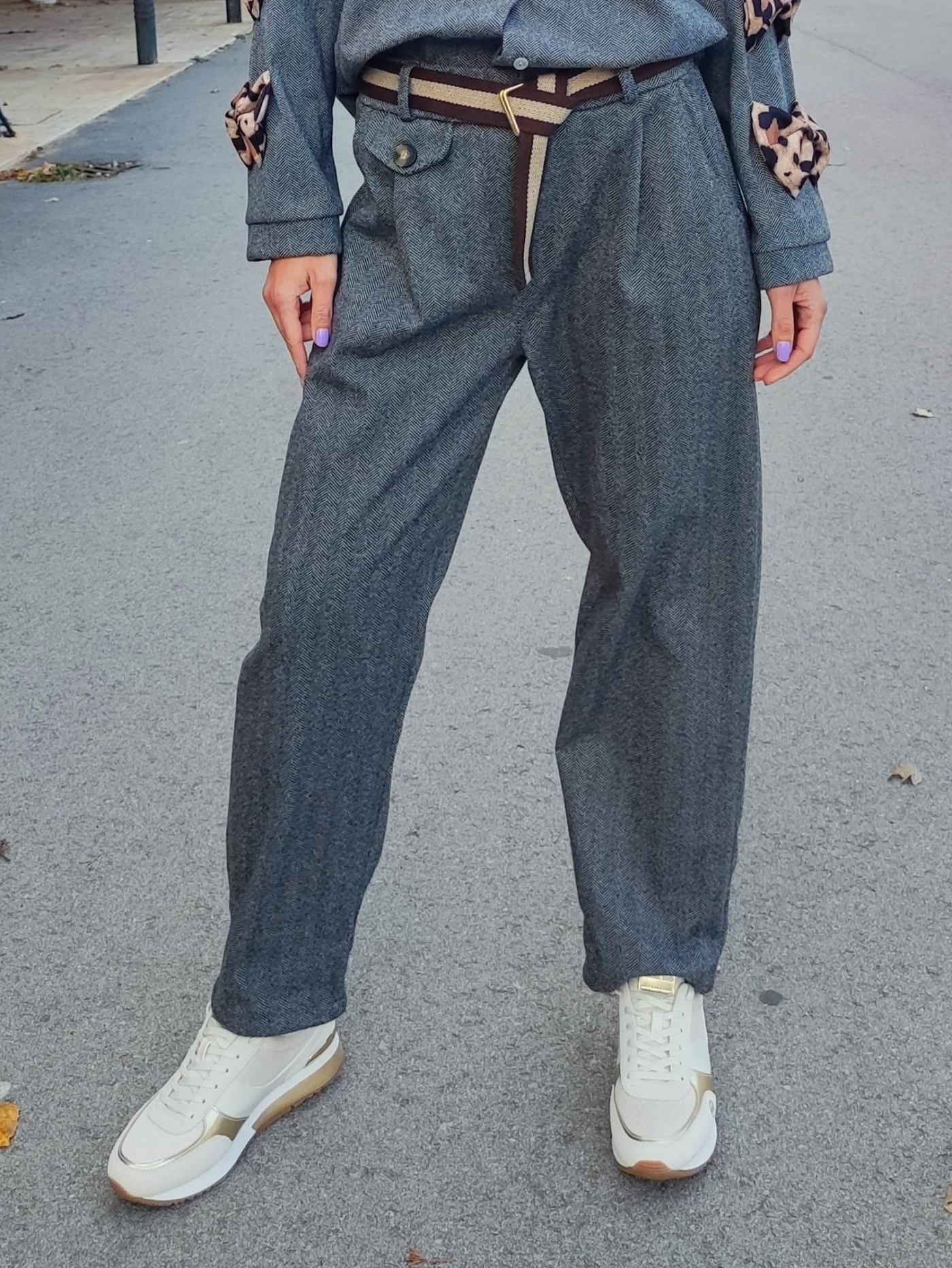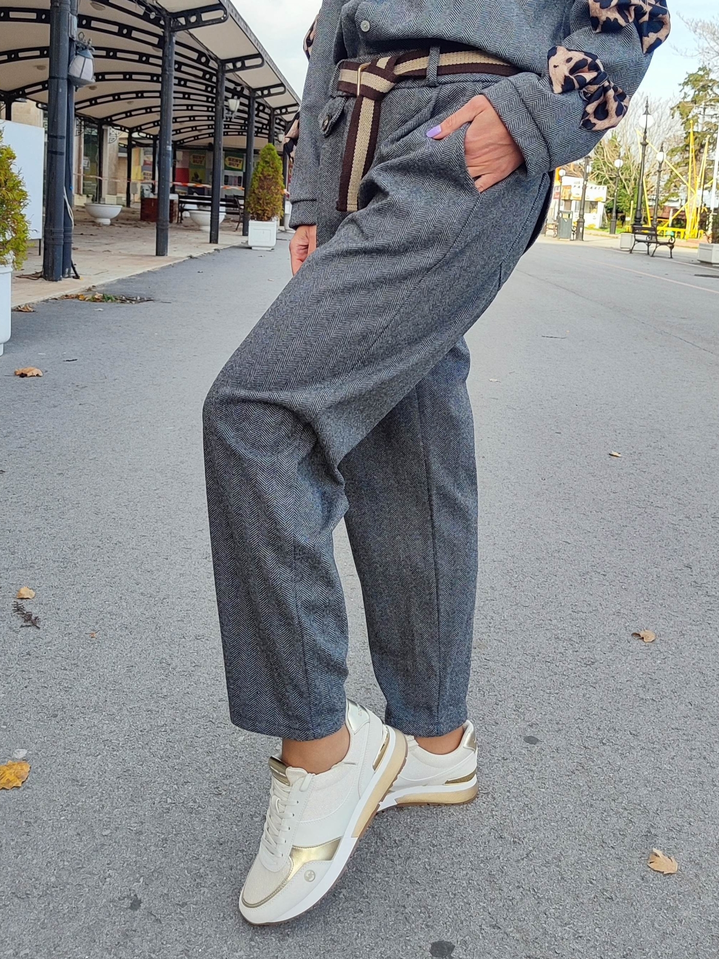 Елегантен модел панталон ,който съчетава класически стил с комфорт. Този модел впечатлява с мекотата си,топла вълнообразна текстура и финия си модел "рибена кост" .