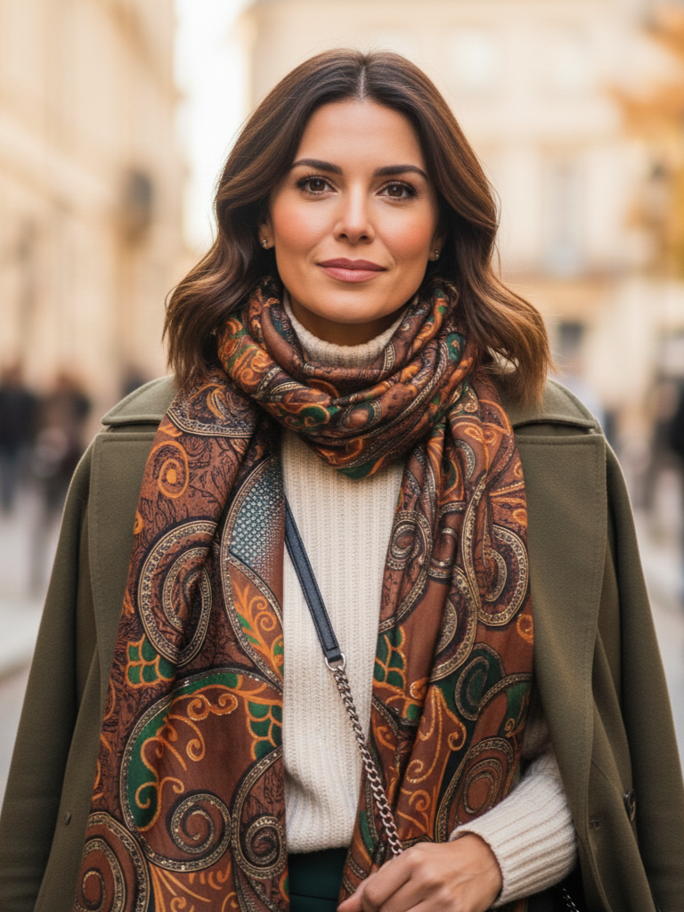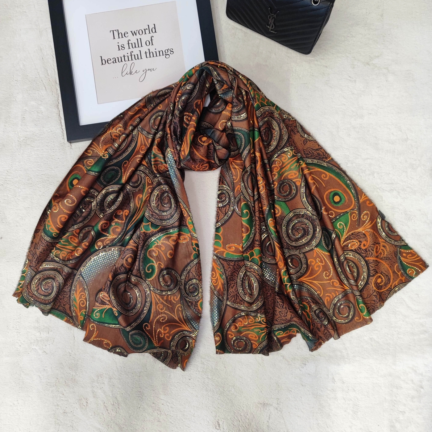 Елегантен Кафяв Шал с Принт - Идеалният Аксесоар за Всеки Сезон