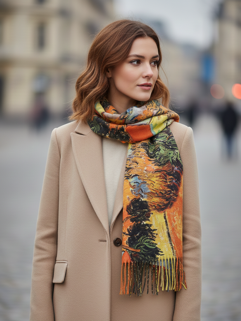 Кашмирен Шал с Принт на Ван Гог | Носимо Изкуство – Купи Онлайн