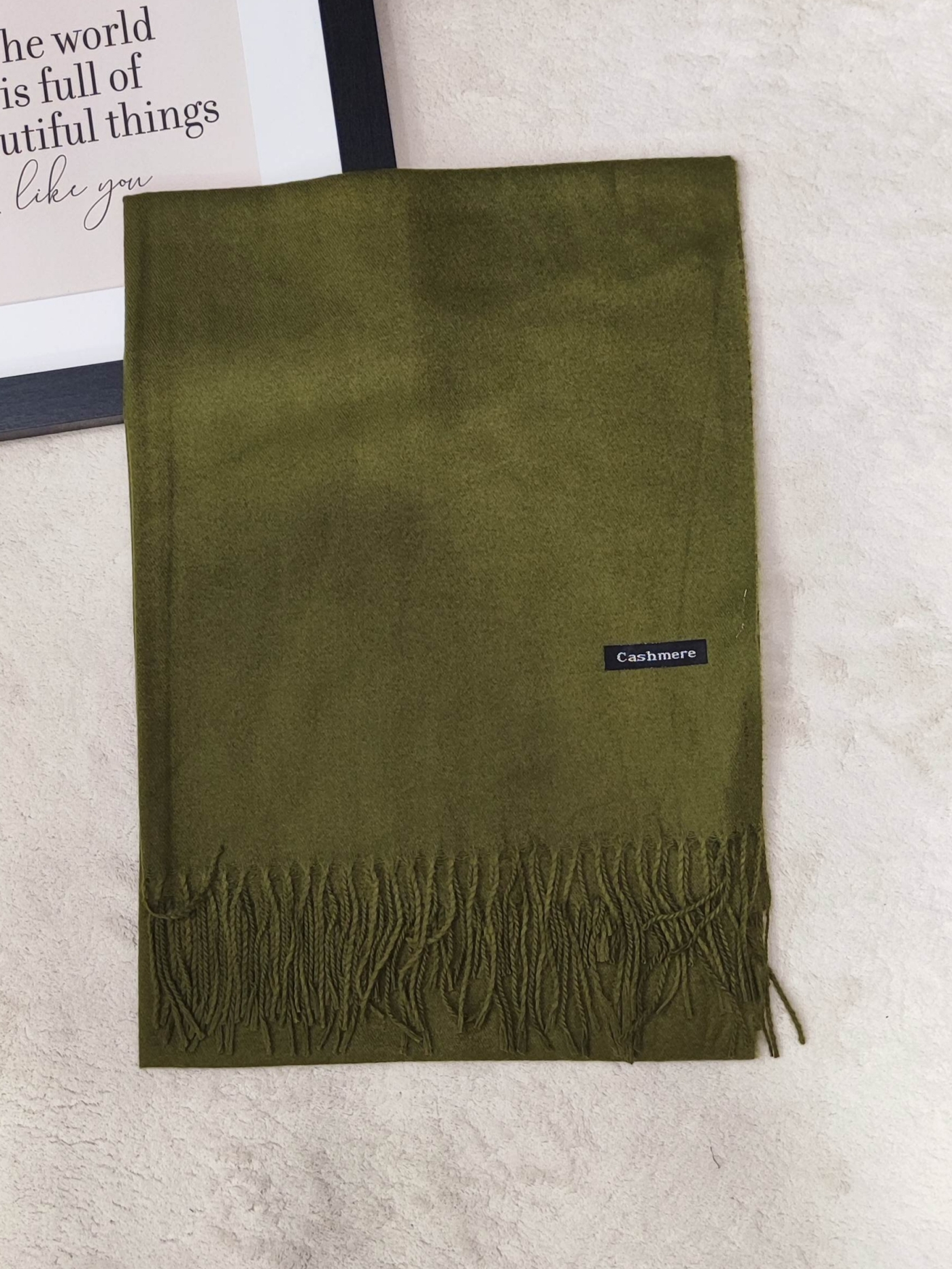 Едноцветен кашмирен шал в цвят хаки – елегантен и топъл.