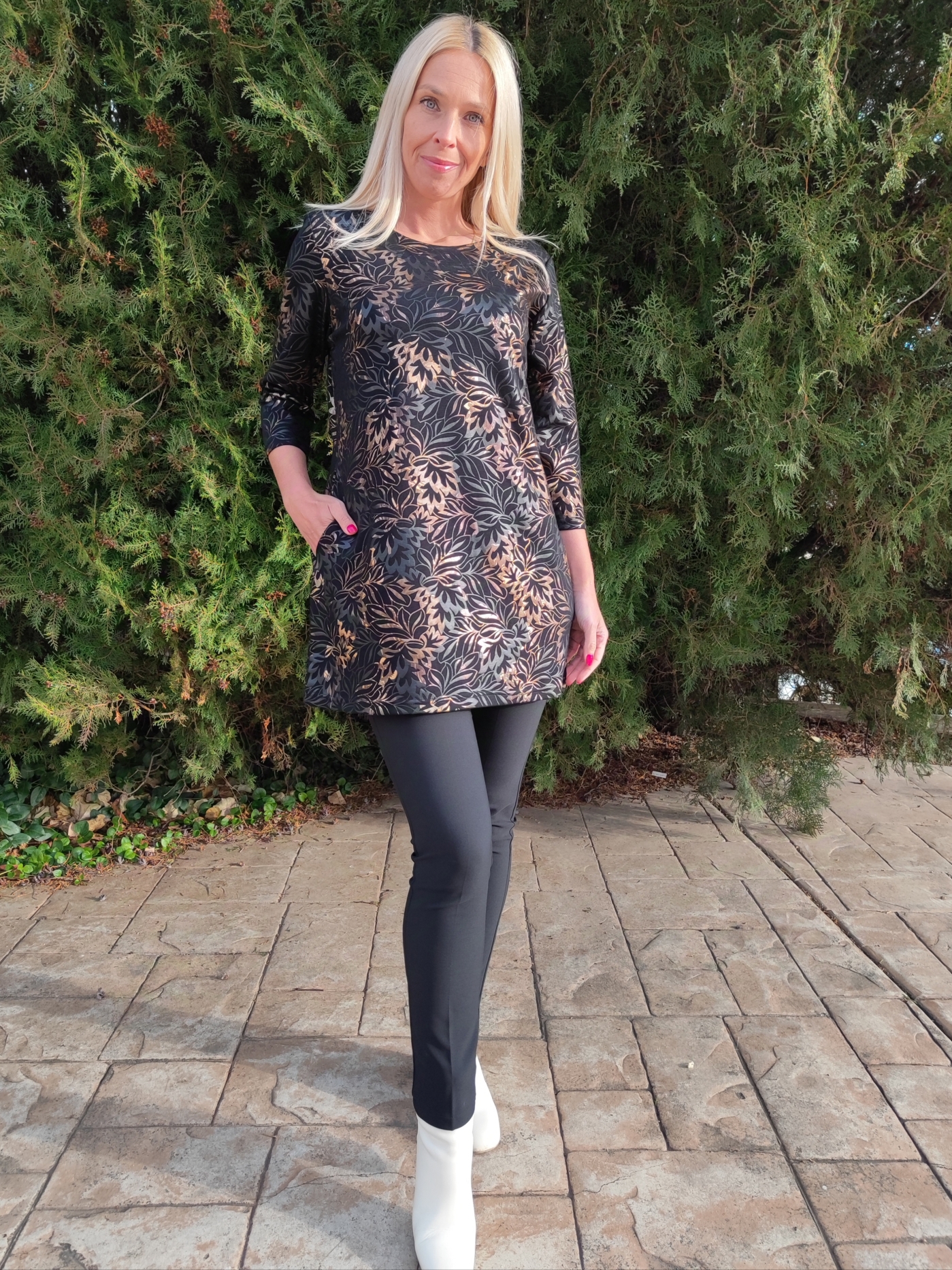 Елегантна Дамска Туника – Черна с Ефектни Златни Нюанси