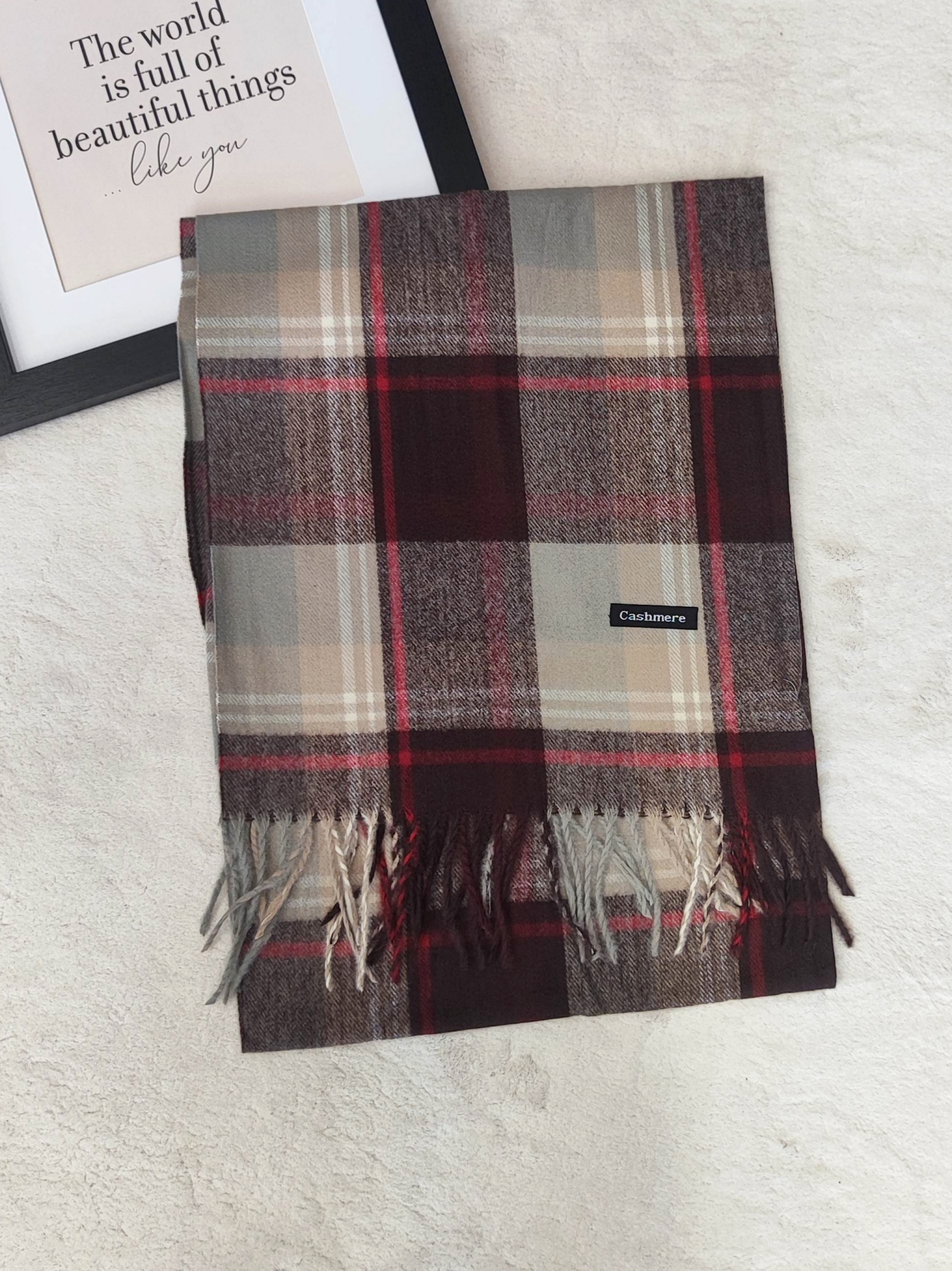 🧣 Елегантен мъжки шал в класическо каре – комбинация от Бежово и Бордо.