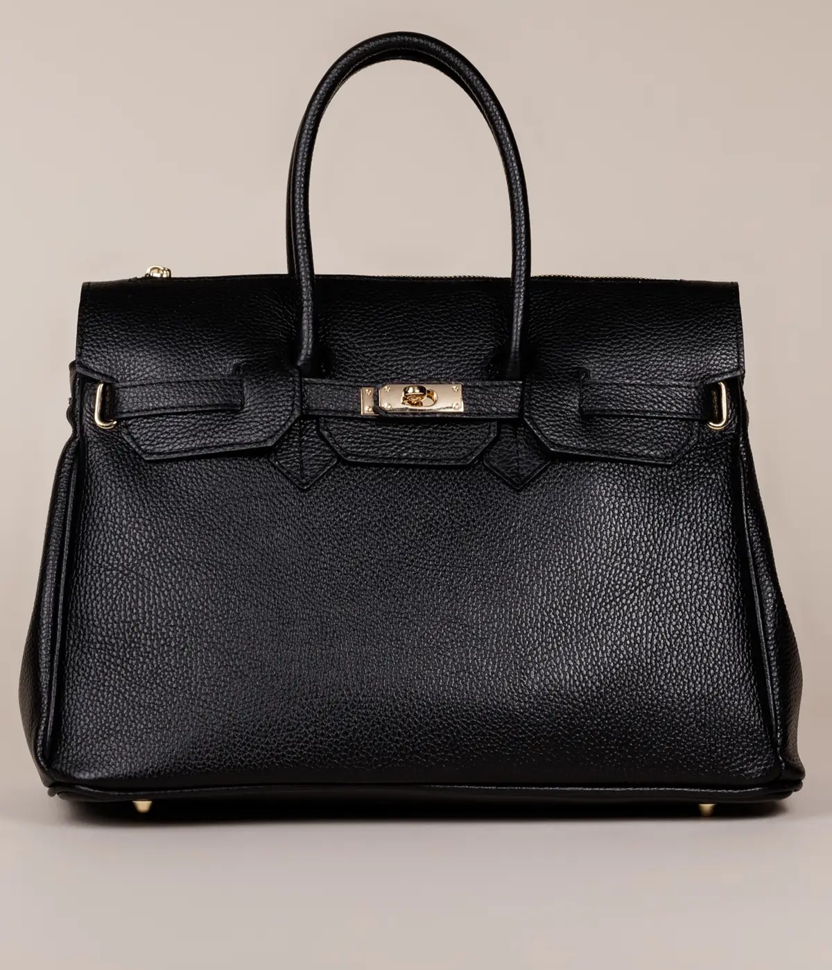Добавете доза стил към вашия гардероб с тази класическа италианска чанта. Изработена от плътна естествена кожа (Vera Pelle) с характерна зърнеста текстура, тя съчетава луксозен вид и изключителна издръжливост. Моделът е вдъхновен от вечните класики, предлагайки изчистени линии и изискани детайли в златист цвят.
