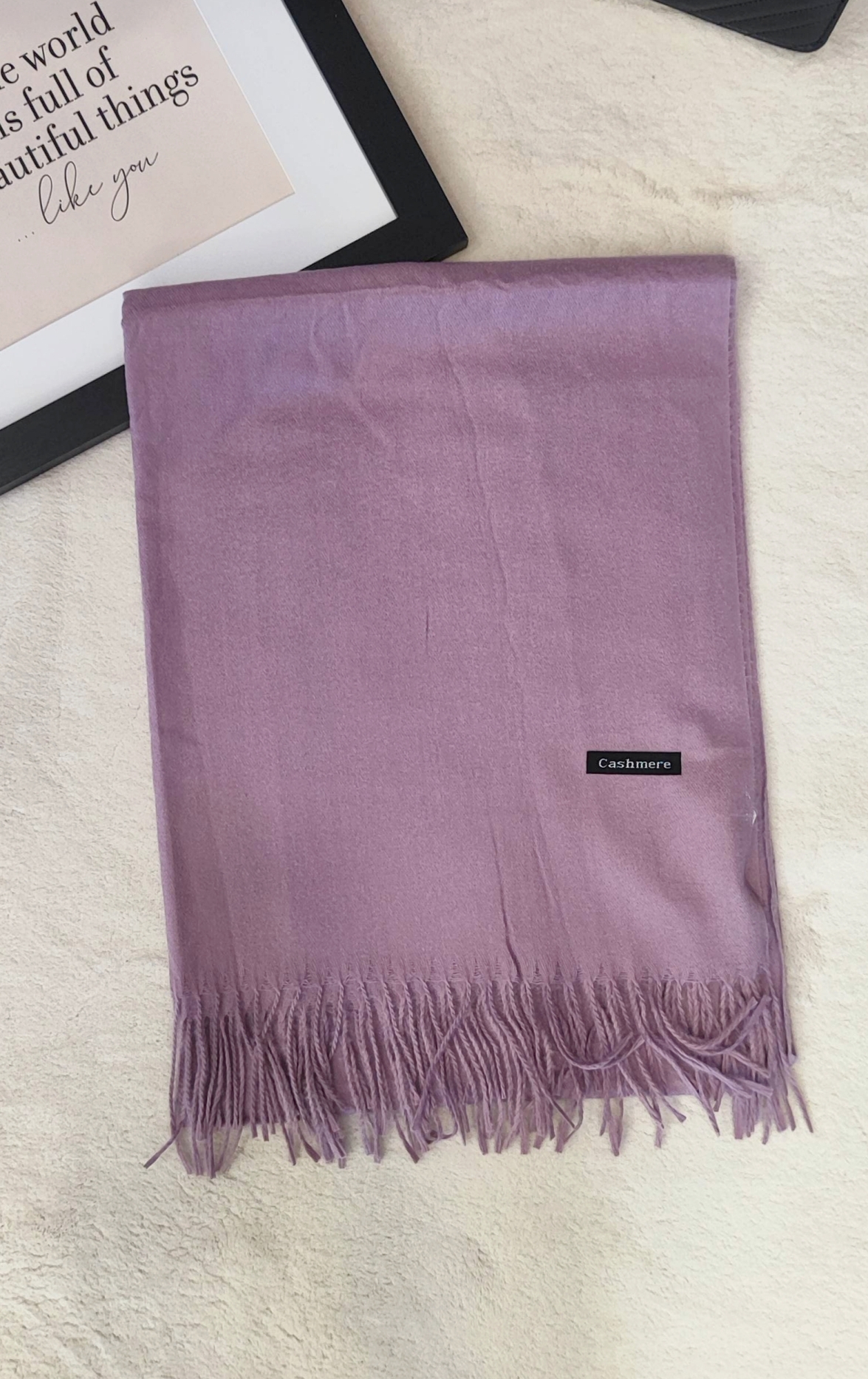 Едноцветен кашмирен шал в цвят лавандула– елегантен и топъл.