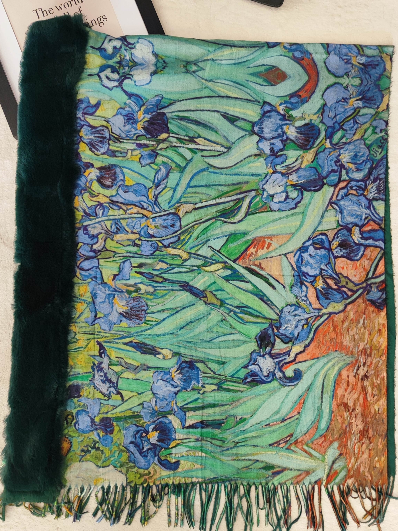 Вдъхновен от шедьовъра на Винсент ван Гог – „Ириси“, този аксесоар не е просто дреха, а истинско произведение на изкуството, което ще преобрази всяка ваша визия.