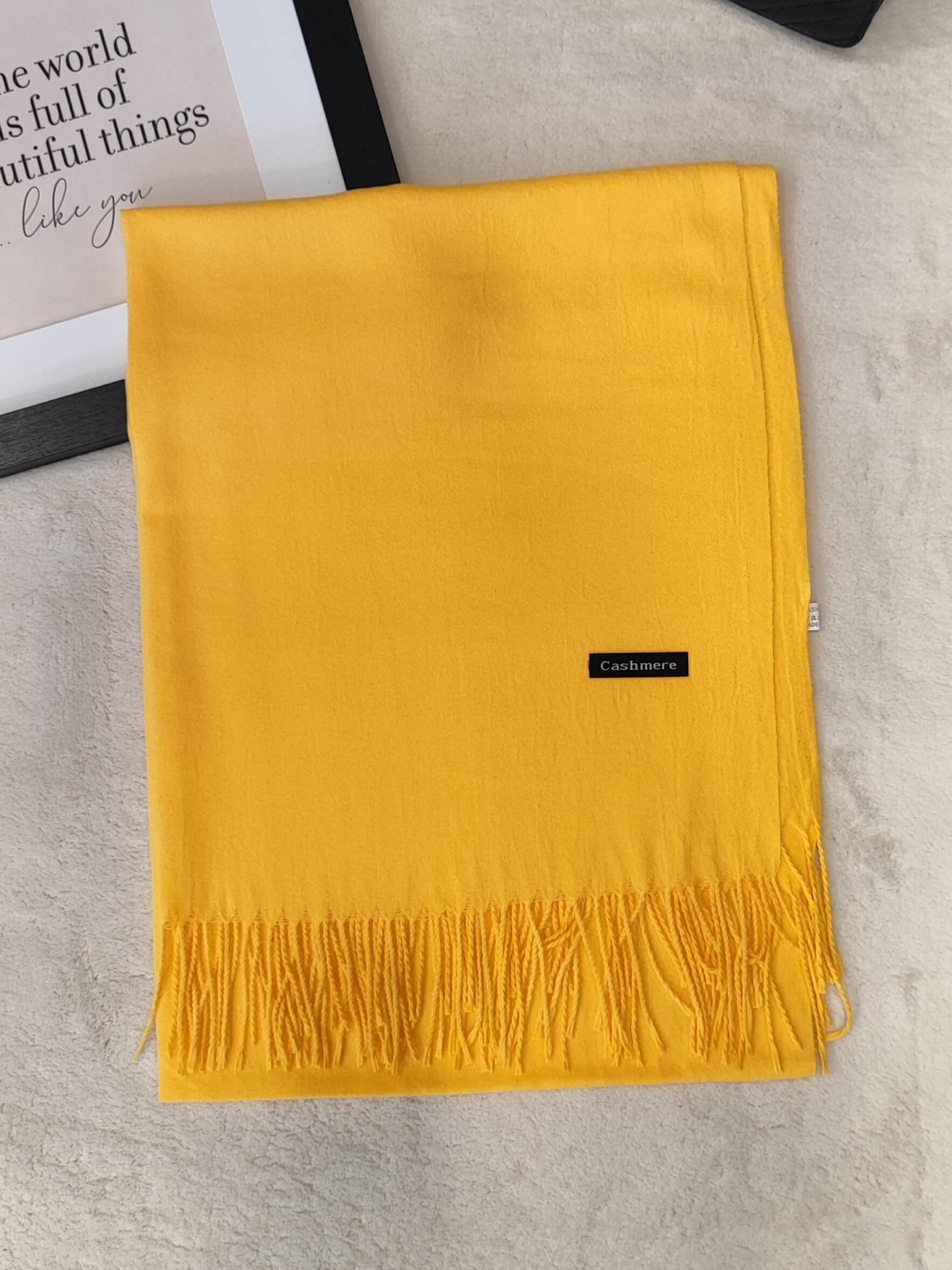 Луксозен, кашмирен шал в жълто. Осигурява несравнима топлина и мекота.