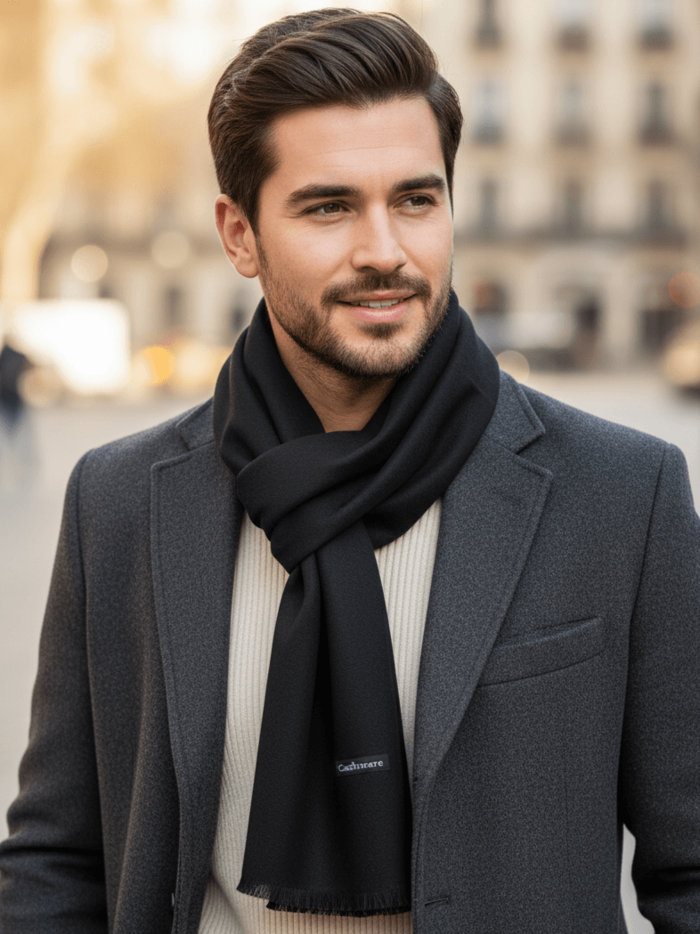 Мъжки кашмирен Шал в Черно – Елегантен и Топъл