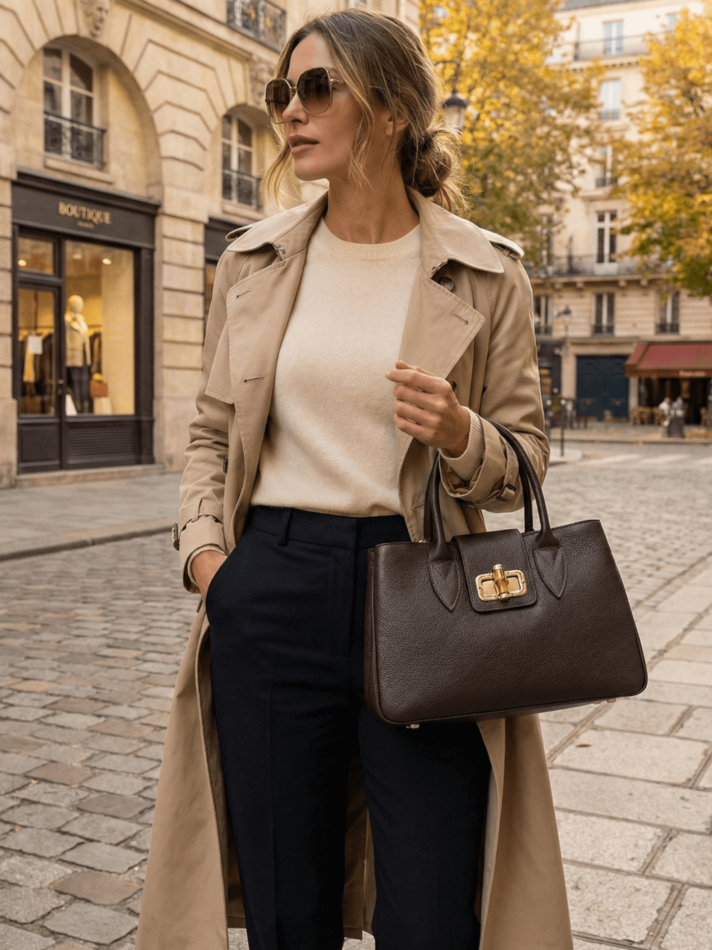Открийте изтънчен италиански стил с тази тъмно кафява чанта от естествена кожа.