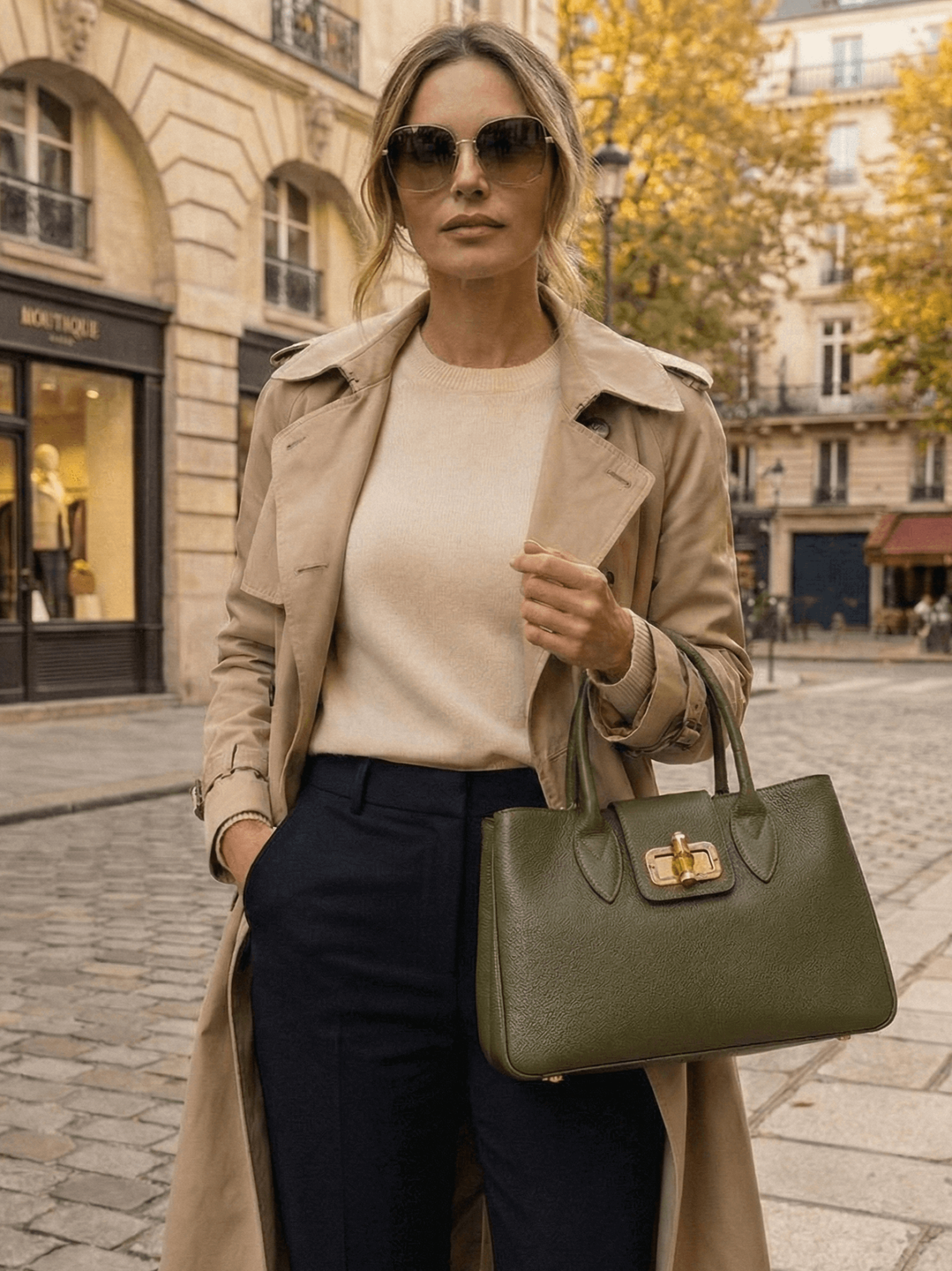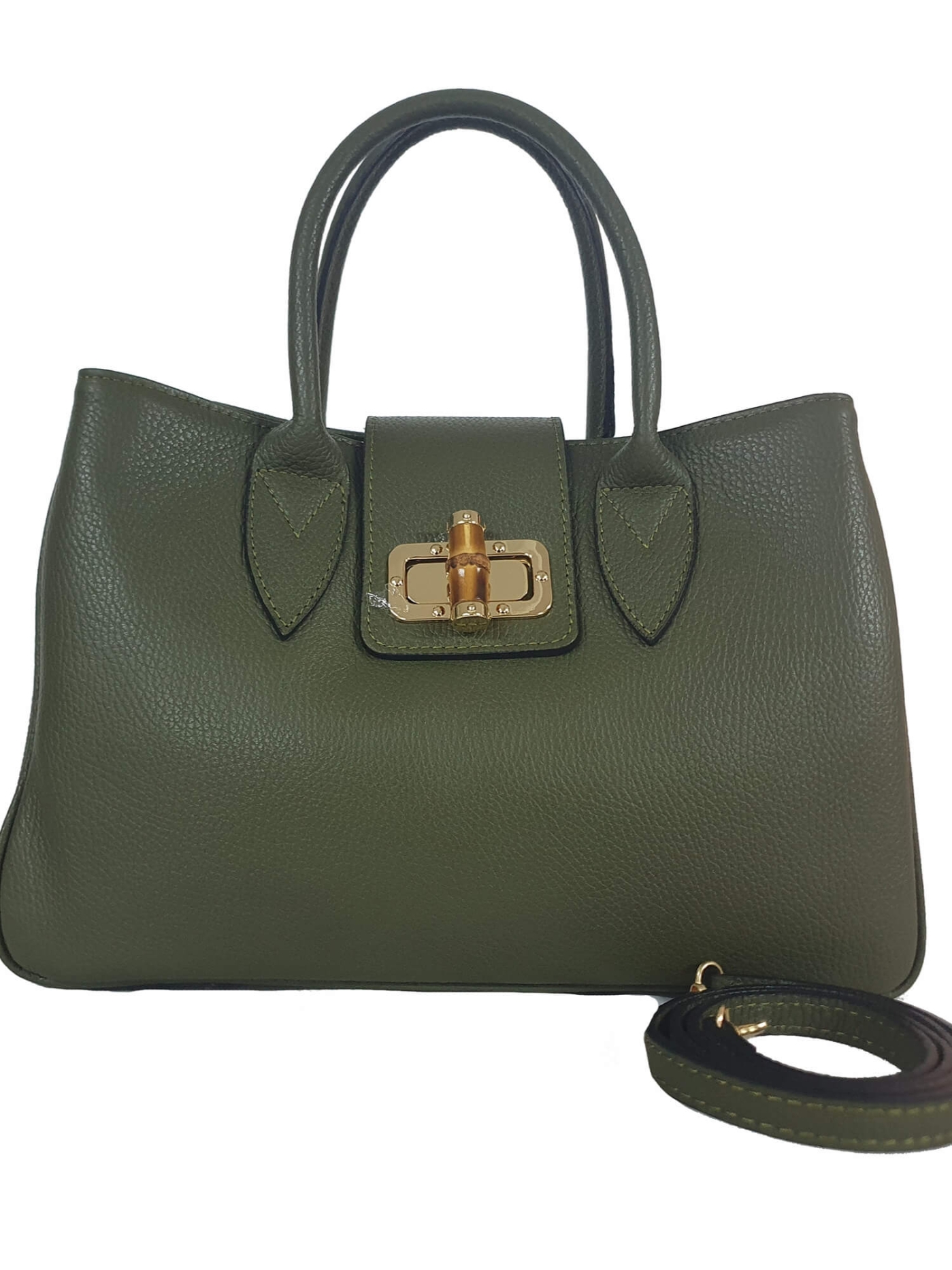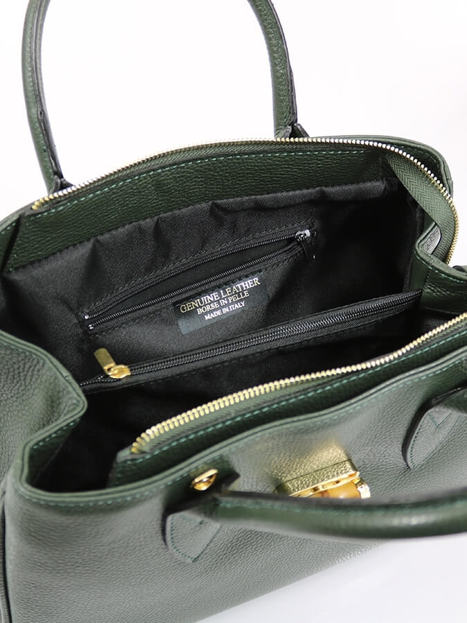 Открийте изтънчен италиански стил с тази зелена (хаки) чанта от естествена кожа.