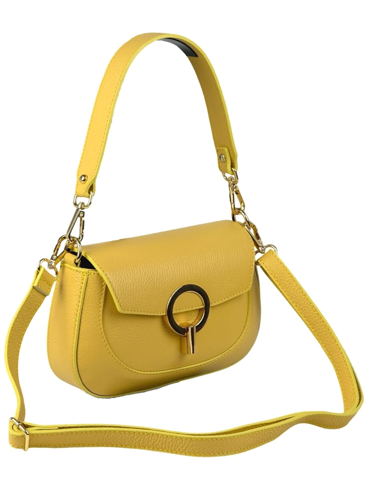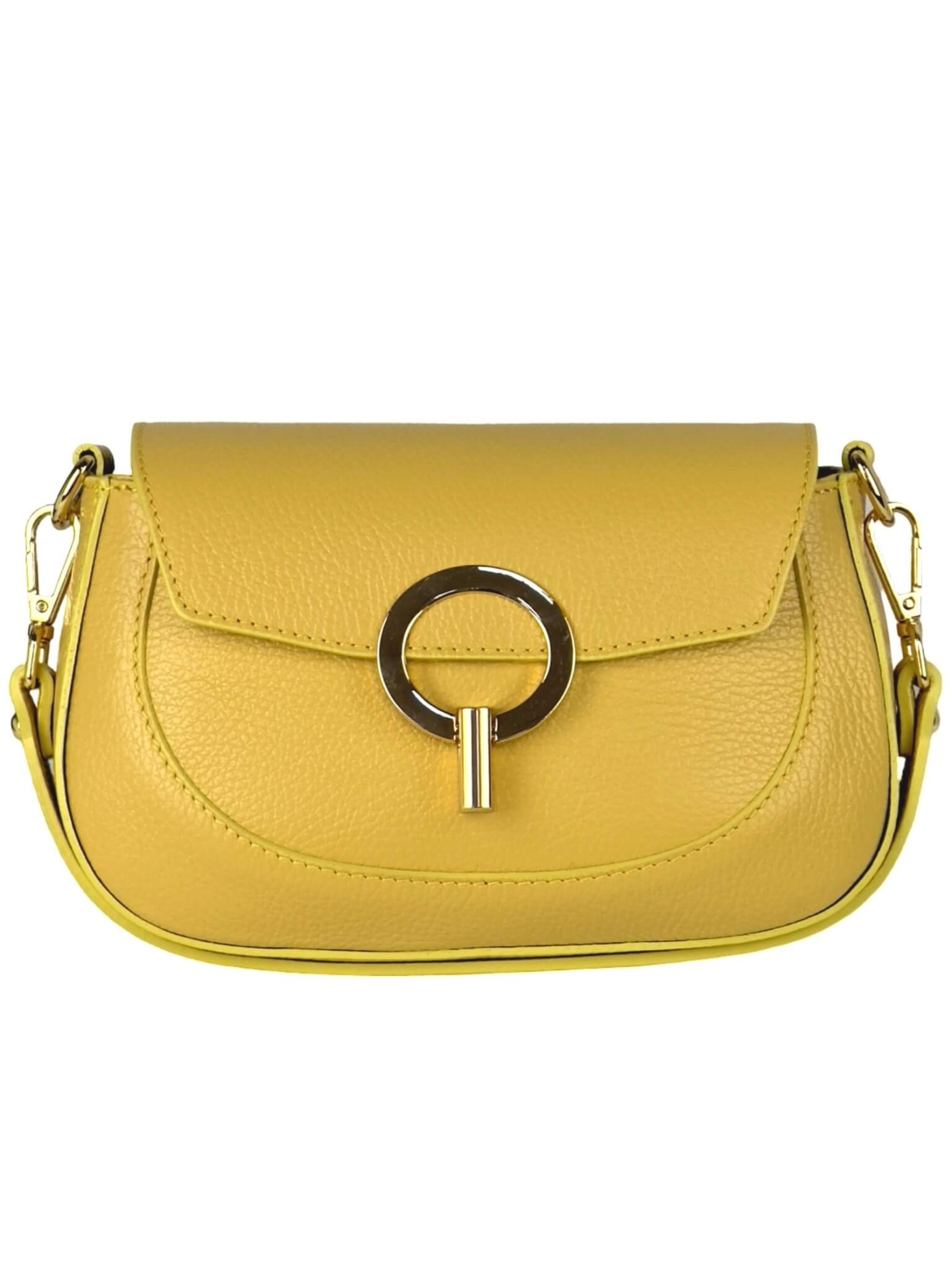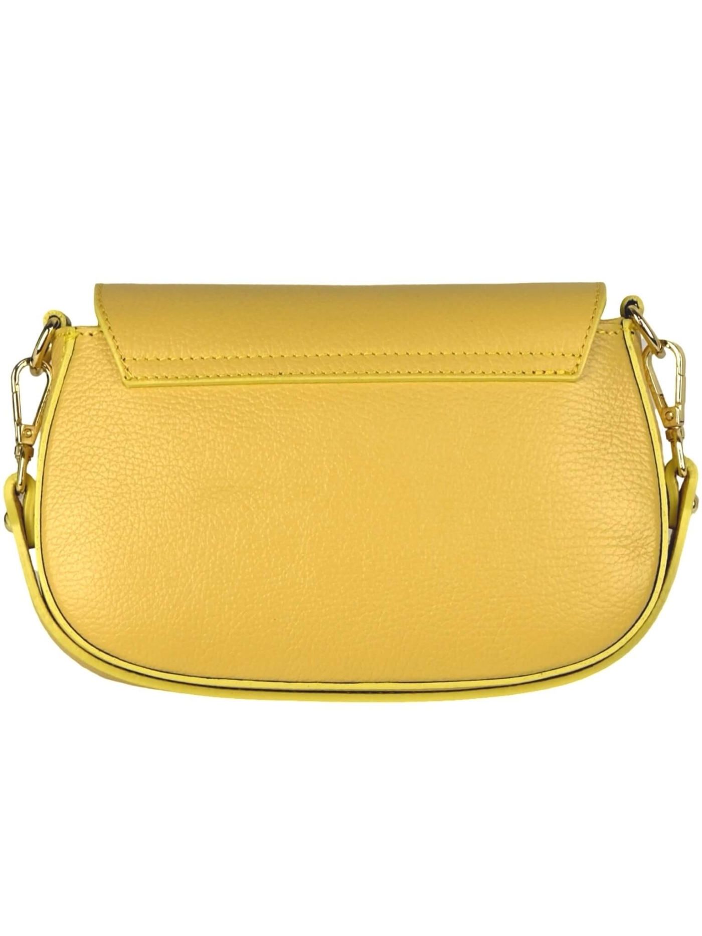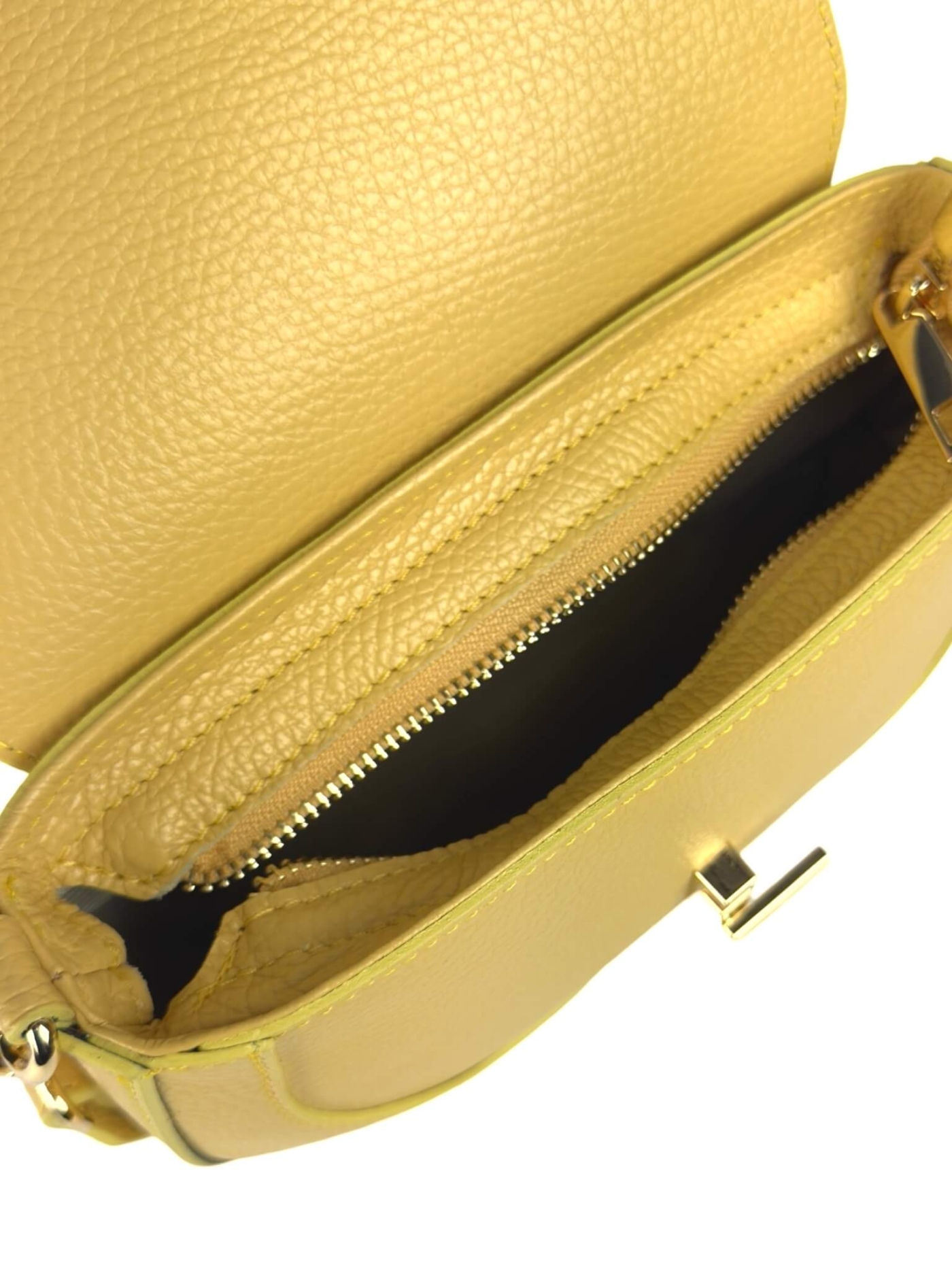Открийте перфектния аксесоар – жълта дамска чанта от естествена кожа (Vera Pelle) със златисти елементи.