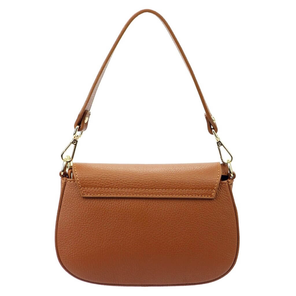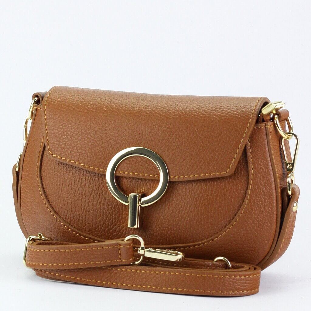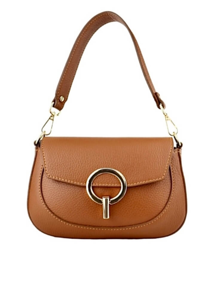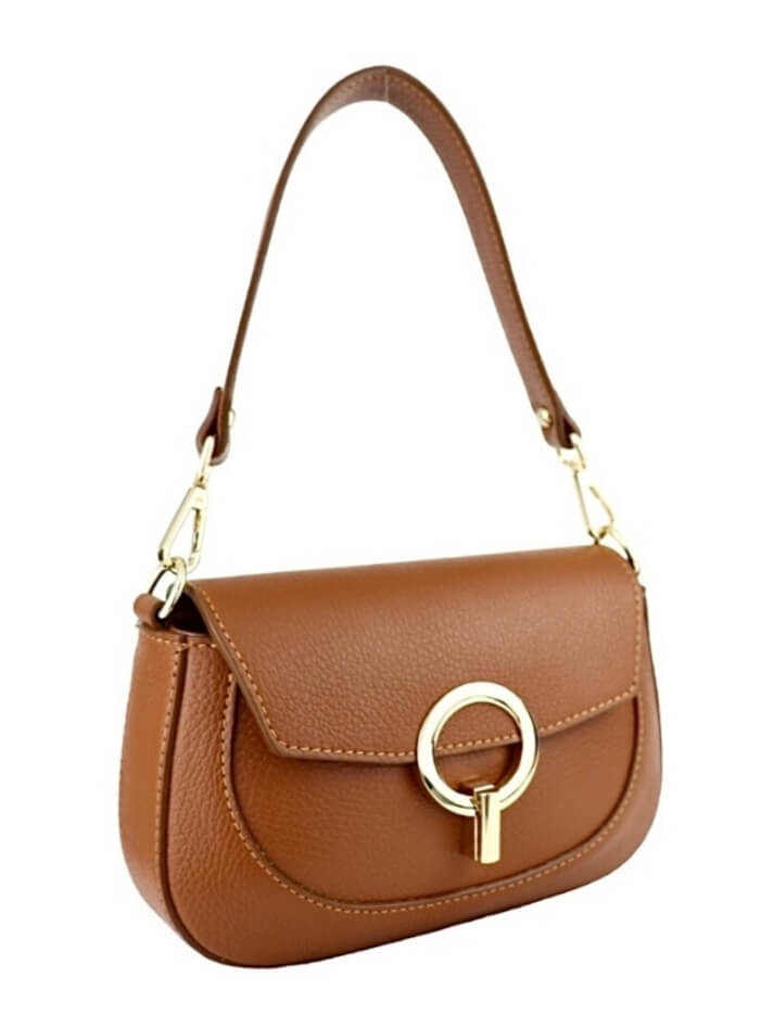 Открийте перфектния аксесоар – кафява дамска чанта от естествена кожа (Vera Pelle) със златисти елементи.