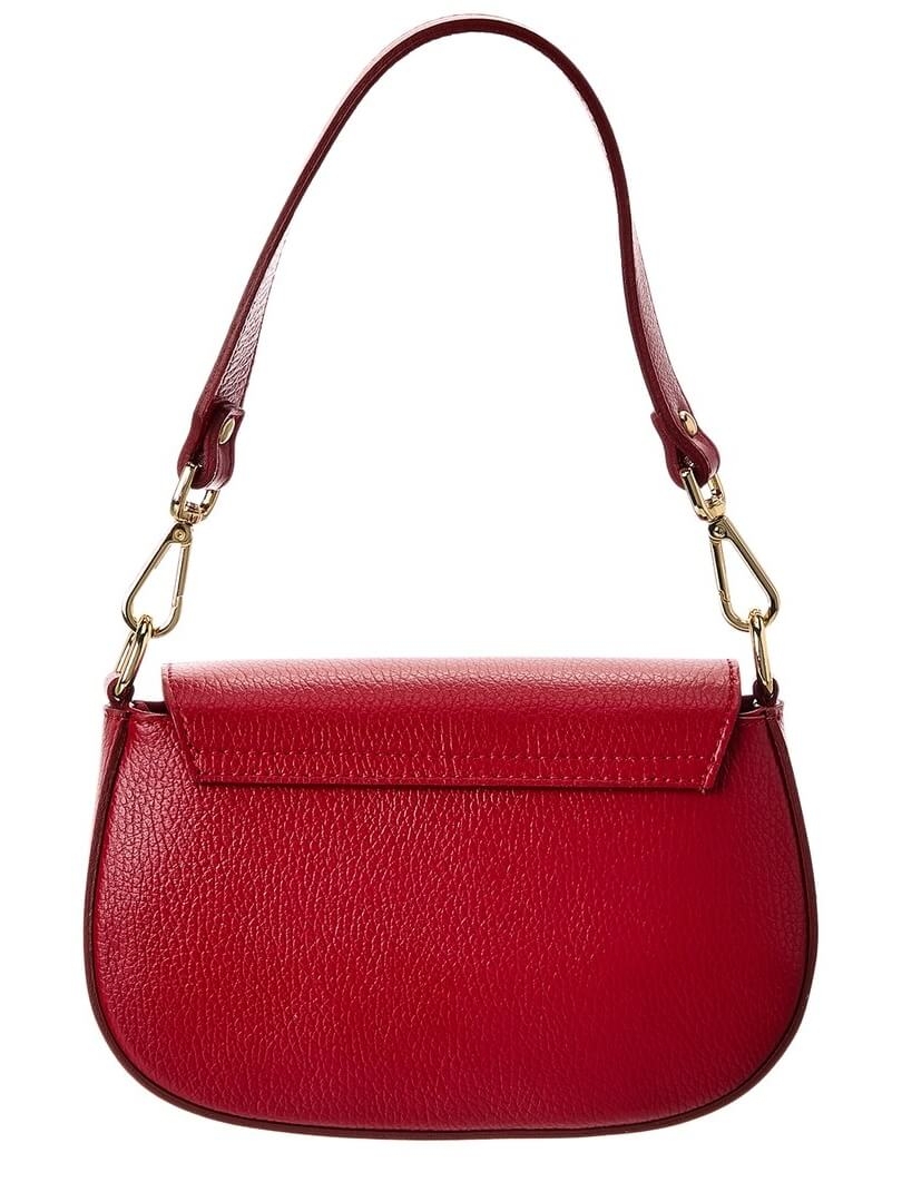 Открийте перфектния аксесоар – дамска чанта в цвят бордо от естествена кожа (Vera Pelle) със златисти елементи.
