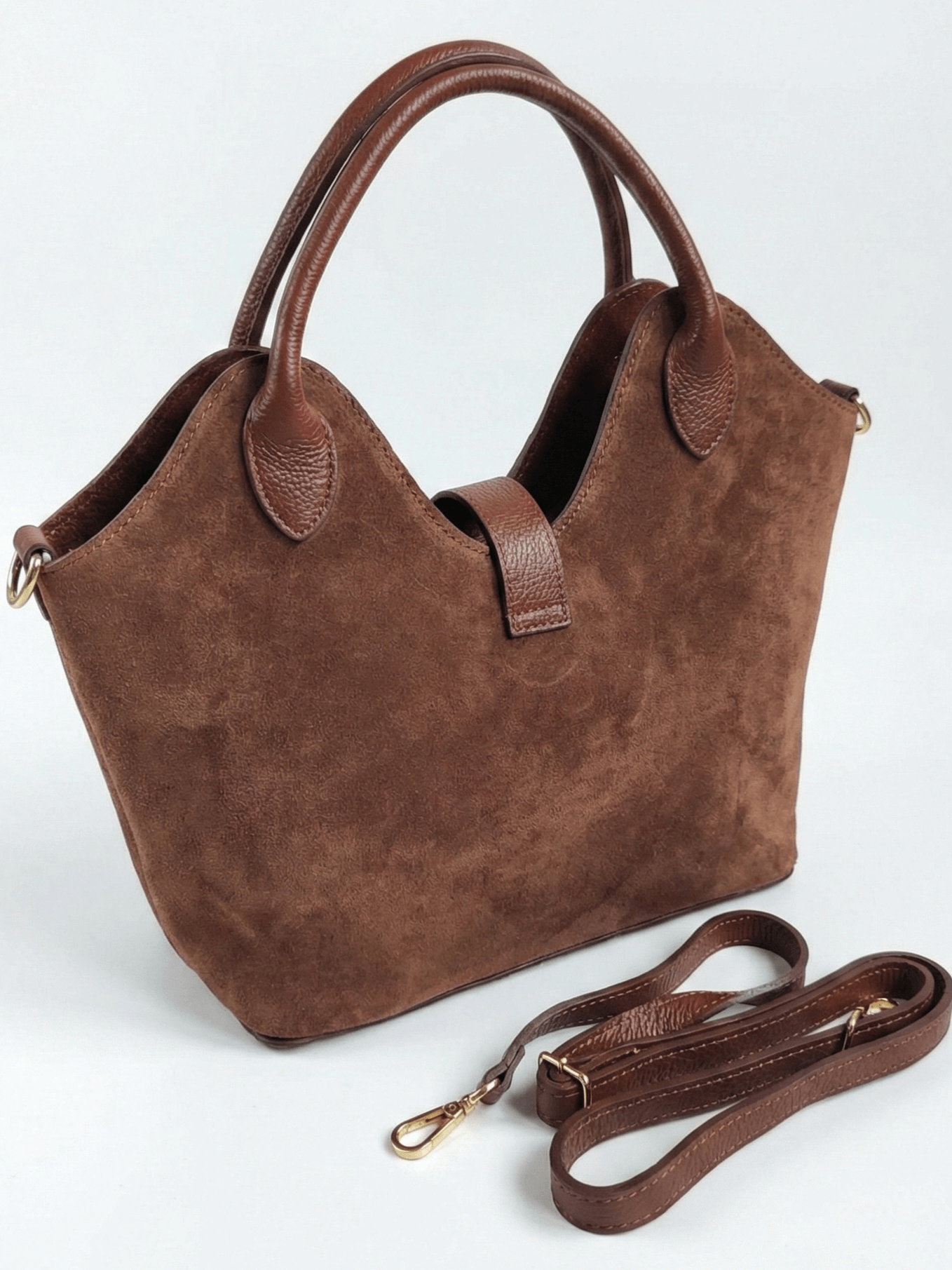 Удобство: Късите дръжки са идеални за носене в ръка, а включената в комплекта дълга кожена дръжка позволява носене на рамо за повече свобода на движение.