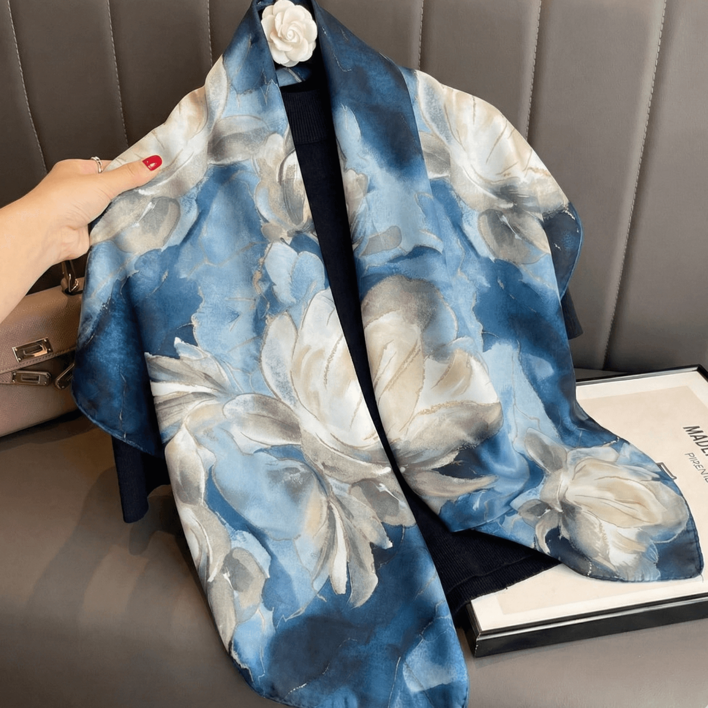Дамски Шал Кърпа на Цветя – Синьо и Бежово | Unique Fashion