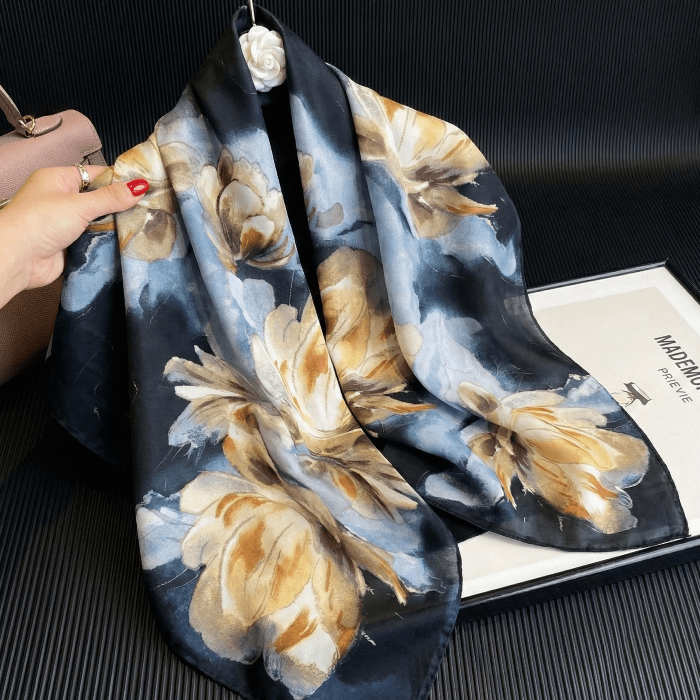 Открий класическа елегантност с този сатенен шал (70х70 см).