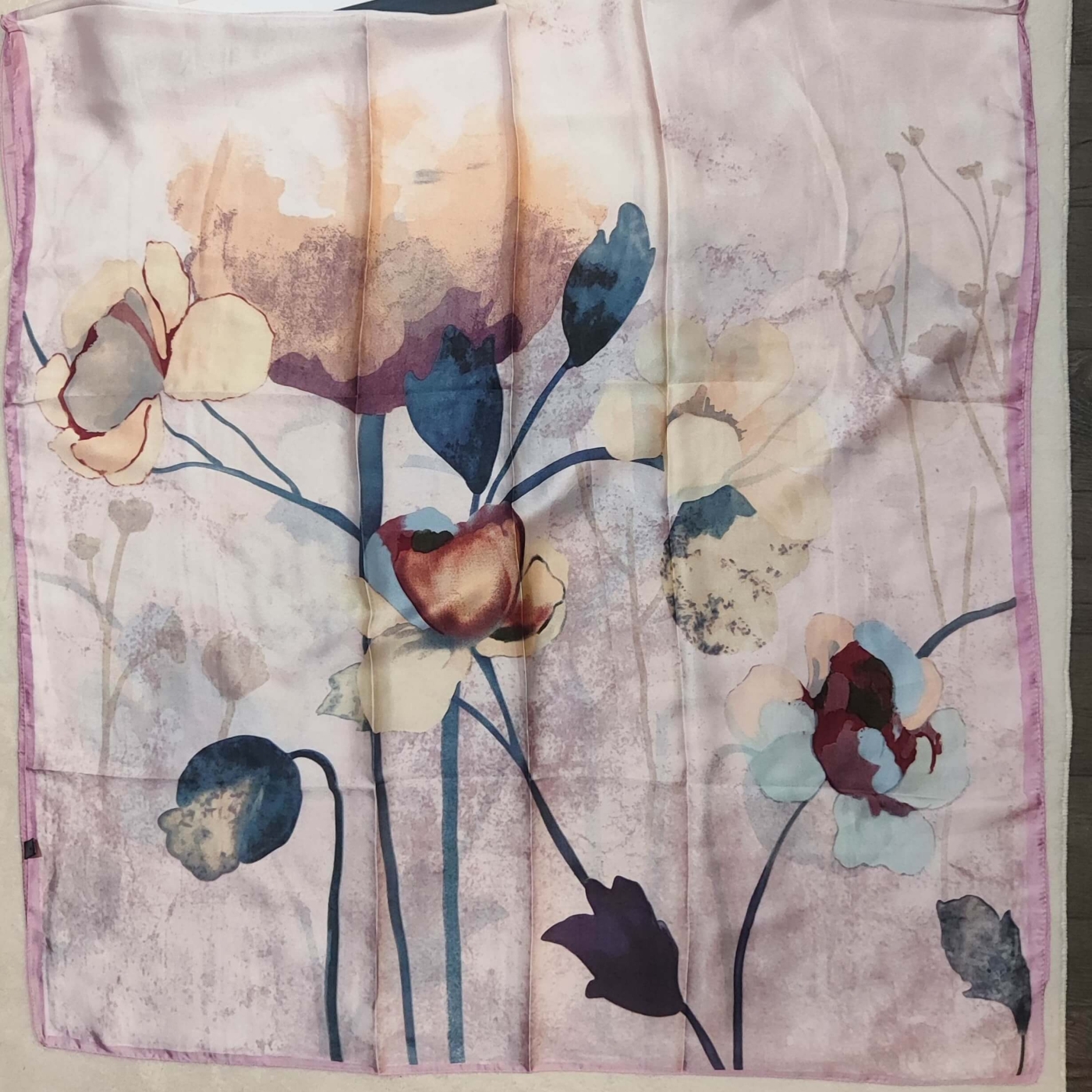 Подарете си усещане за лукс и женственост с този изящен шал от UniqueFashion. Моделът е вдъхновен от романтиката на акварелното изкуство, съчетавайки мека основа в прашно розово с едри, живописни цветя в нюанси на бордо, ванилия и опушено синьо.