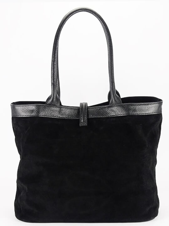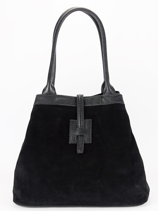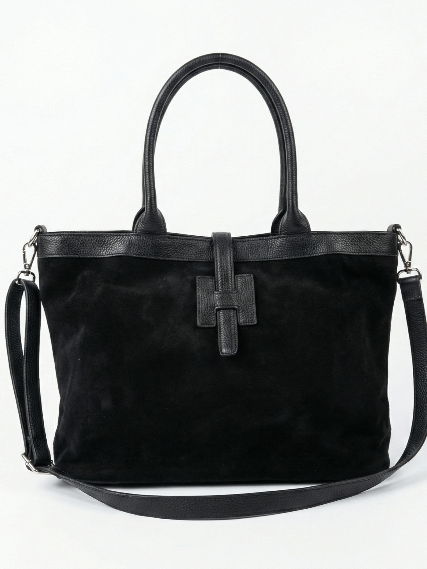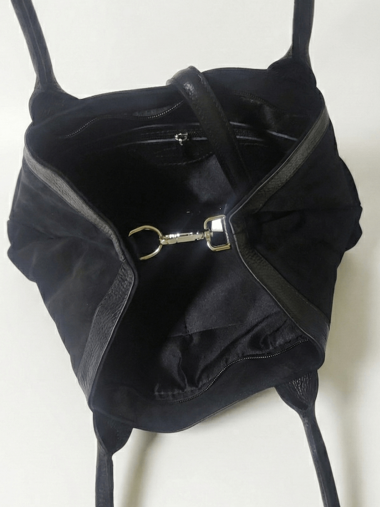 Италианска дамска чанта от естествен велур и кожа – Черен класически модел с променяща се форма
