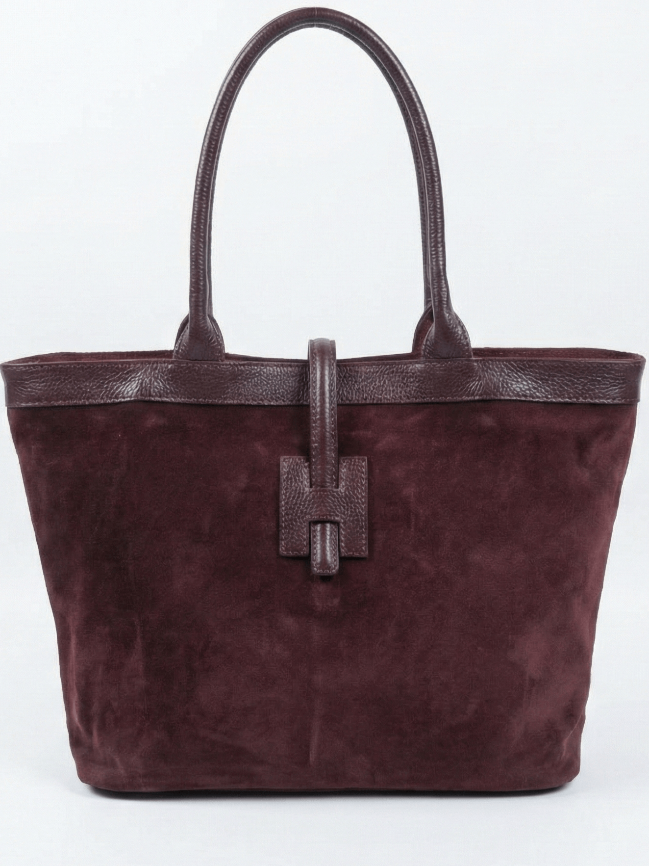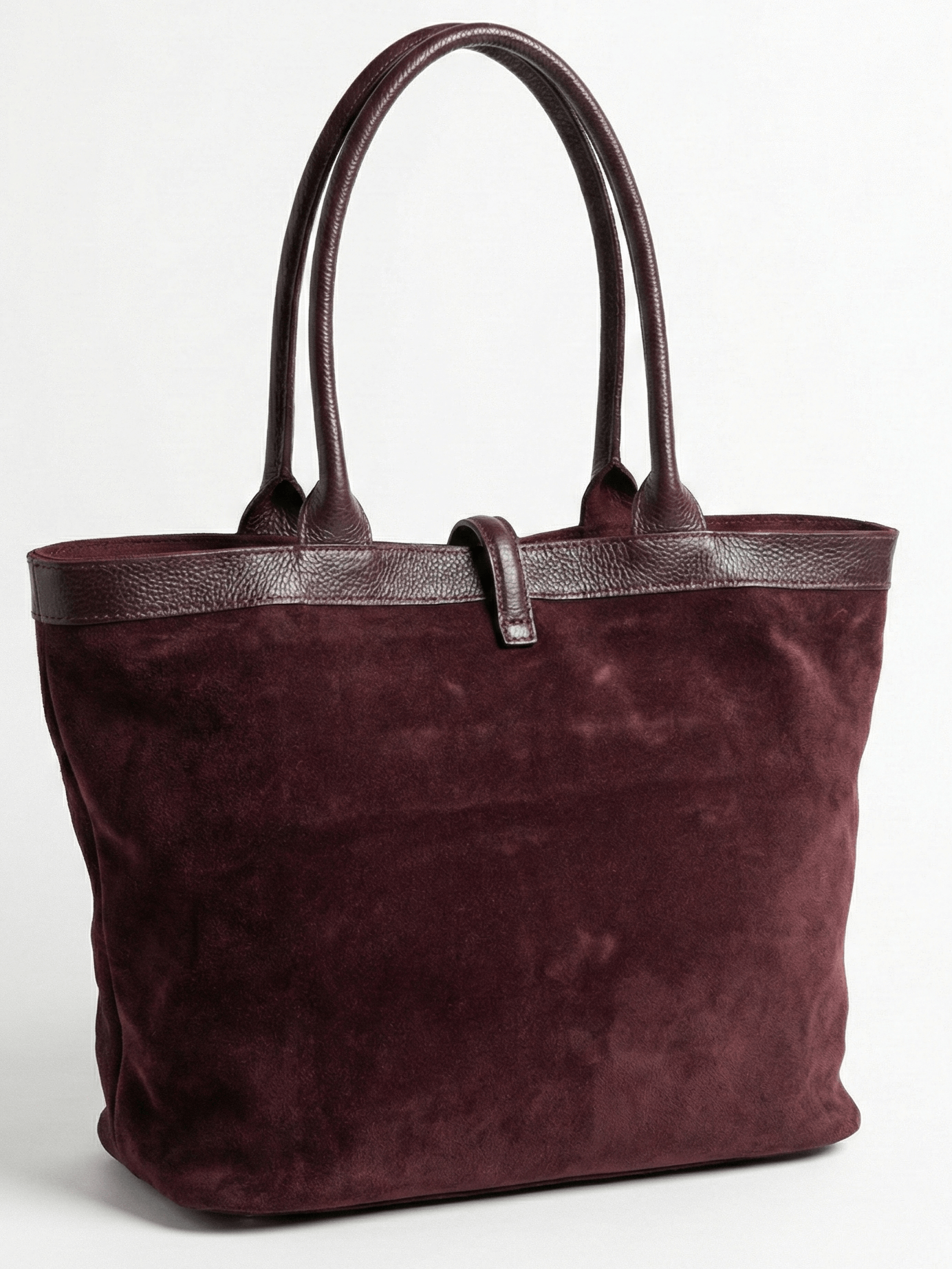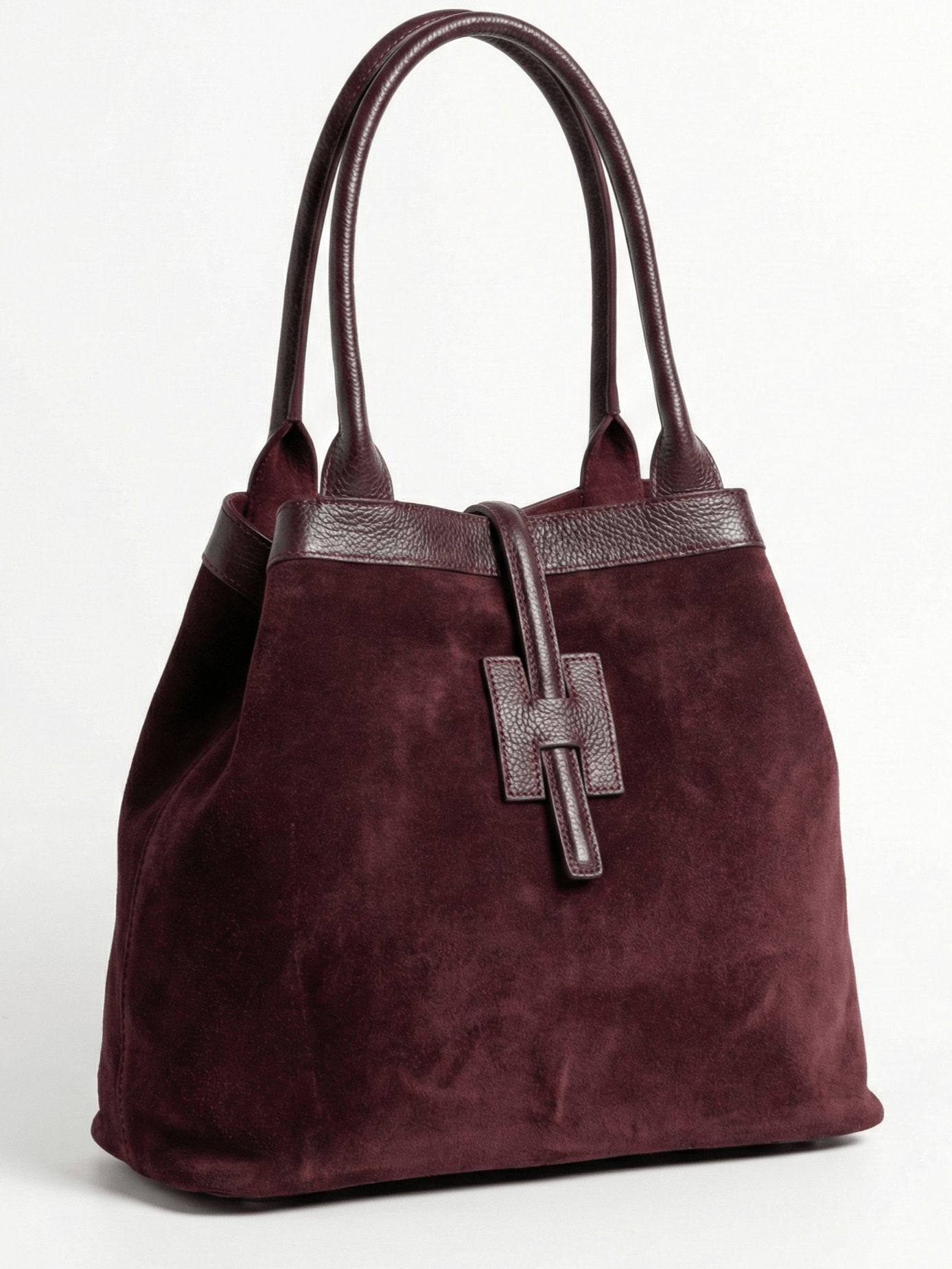 Италианска дамска чанта от естествен велур и кожа – Бордо класически модел с променяща се форма