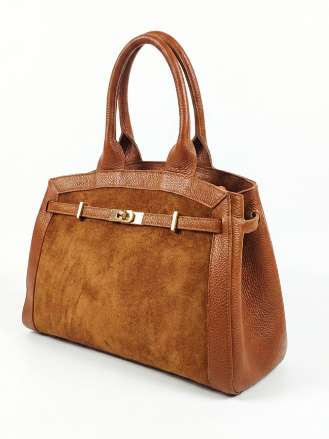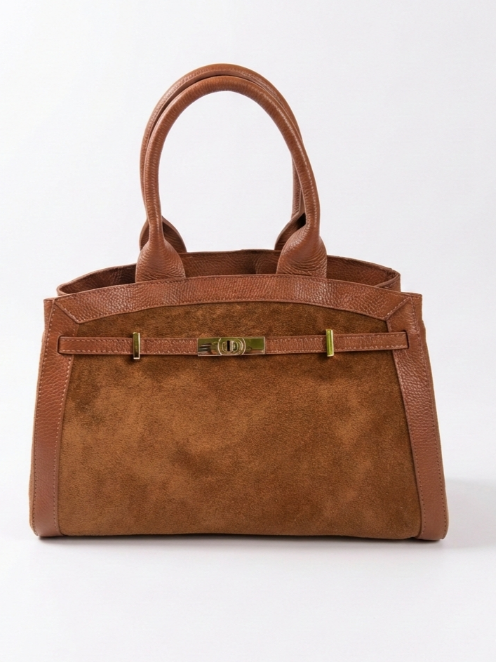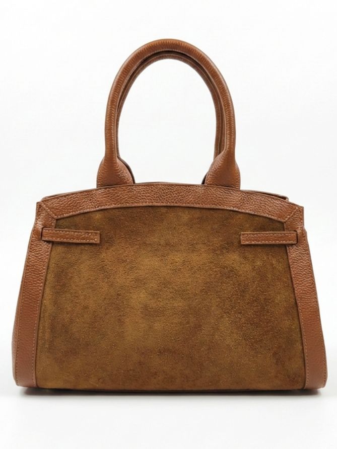 Открийте елегантна кафява дамска чанта от естествена кожа и велур, произведена във Флоренция.