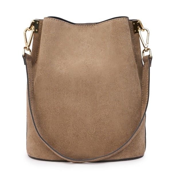 Елегантна италианска бежова чанта от естествен велур с 3 отделения.