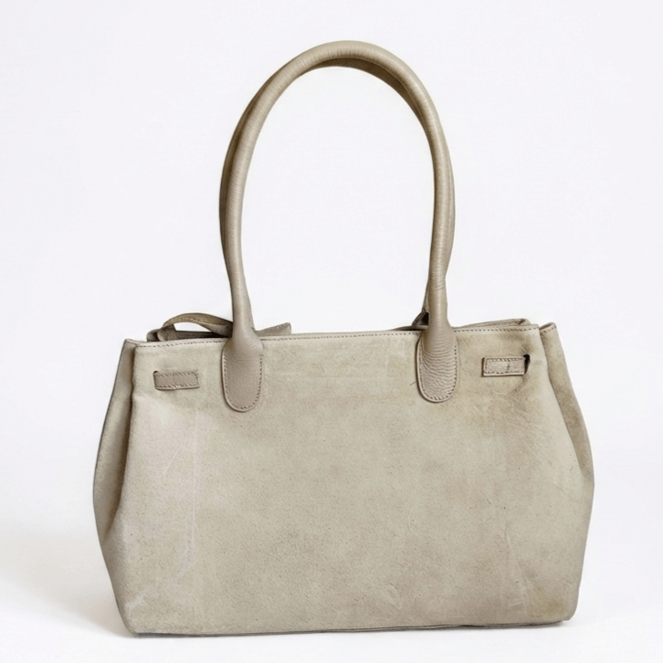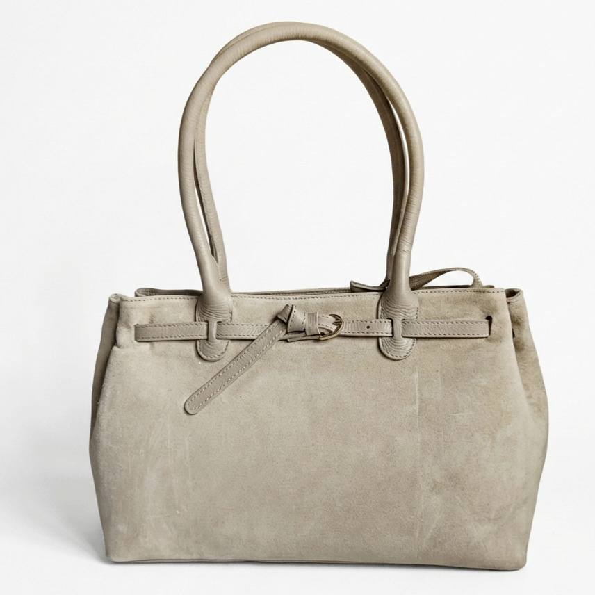 Елегантна дамска чанта в бежово от естествена кожа (Vera Pelle) и велур.