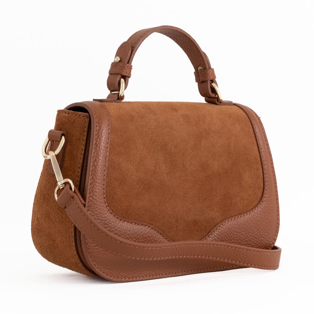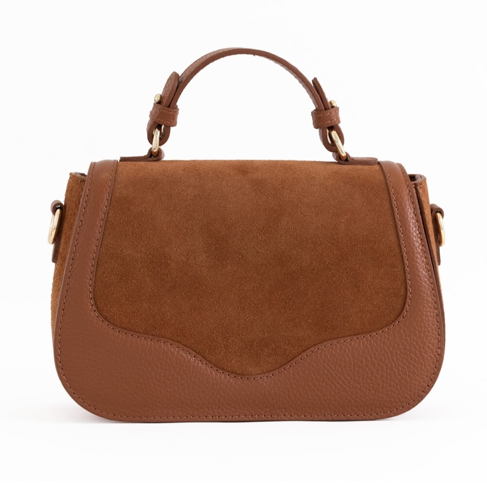 Италианска Дамска Чанта от Естествена Кожа и Велур – Кафява | Unique Fashion