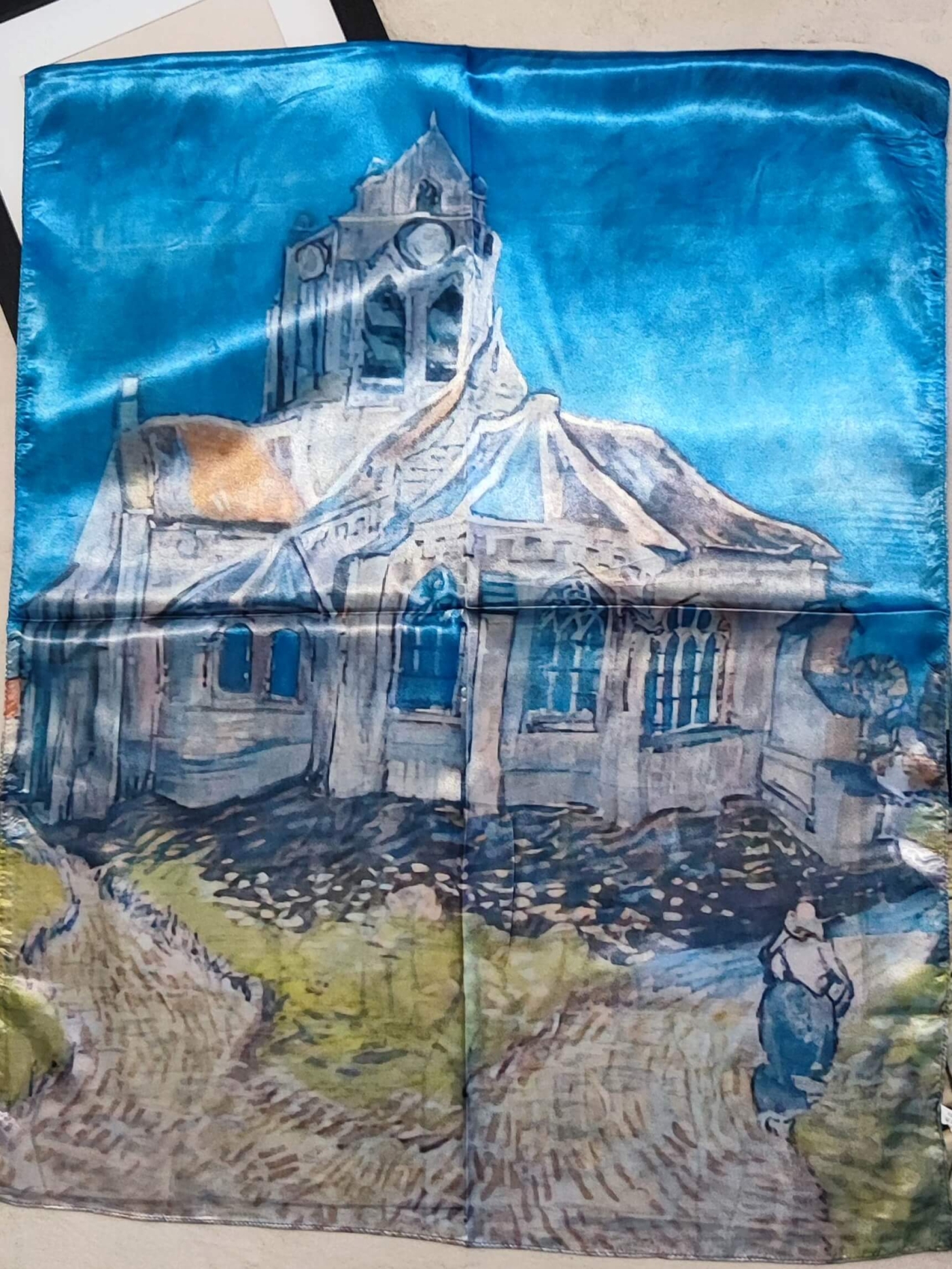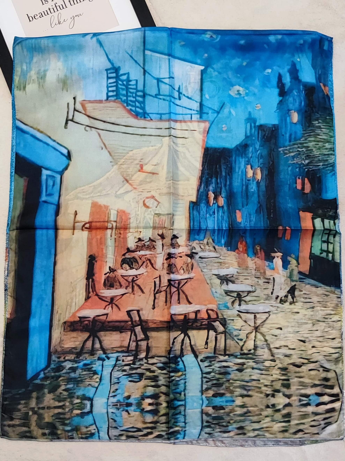 Добавете щипка изкуство към визията си с този нежен копринен шал.