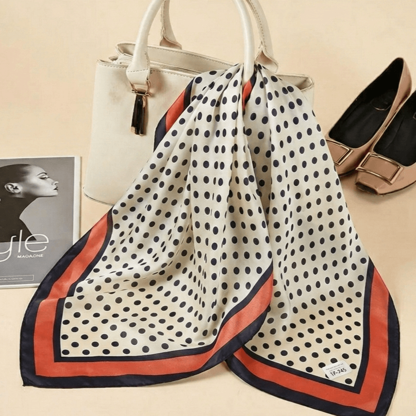 Добавете френски шик към всяка визия с нашия класически сатенен шал на точки!